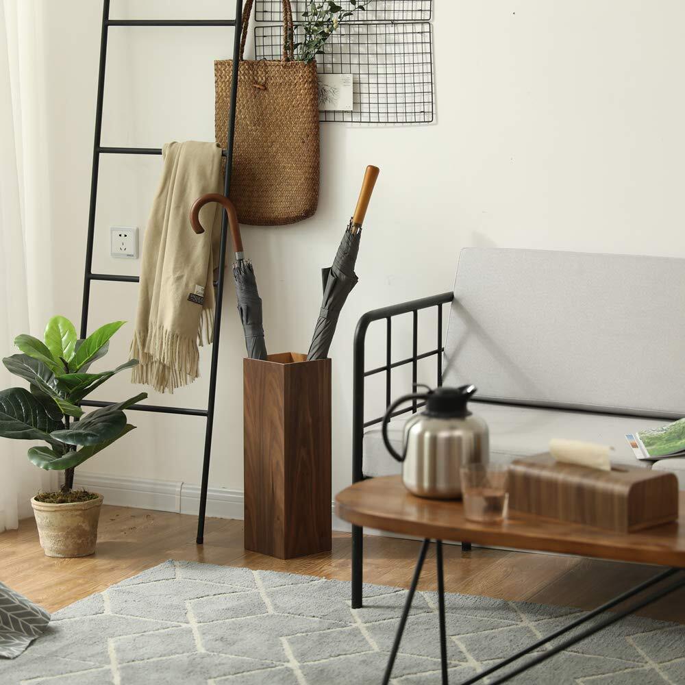 木製 傘立て 着脱式水受け皿付き 玄関収納 長傘/野球/ゴルフクラブ、 アンブレラスタンド スクエア 【1 正規品】 可能 ベージュ・ダークブラウン (ベージュ)