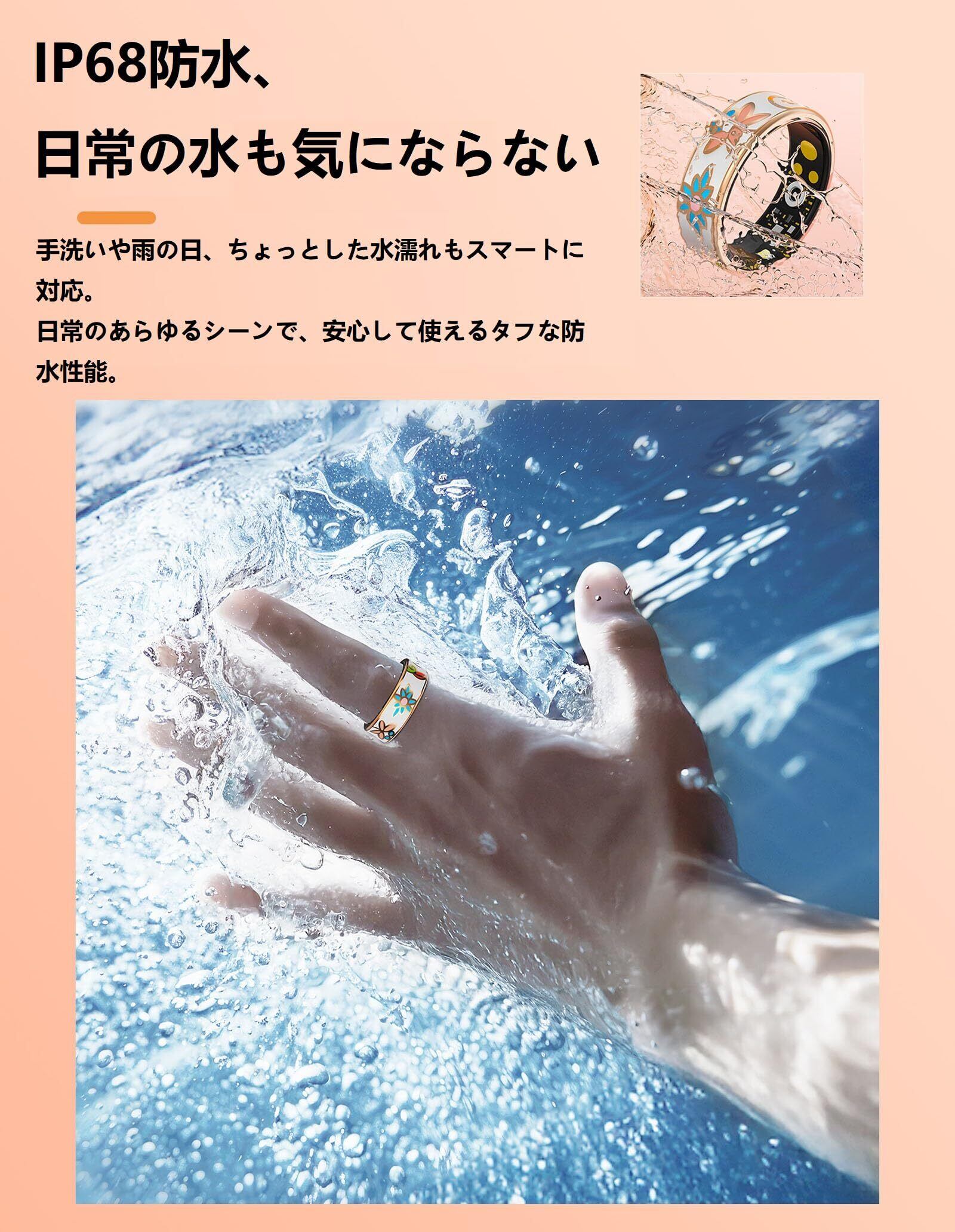 スマートリング レディーズ エナメルデザイン スマート指輪 健康指輪 着信通知/SNSリマインダー 体調管理 H-R/B-P/SP-O2飽和度/睡眠モニター 活動量計 消費カロリー 歩数計 遠隔撮影 防水 ワイヤレス充電ケース付き IOS/Android