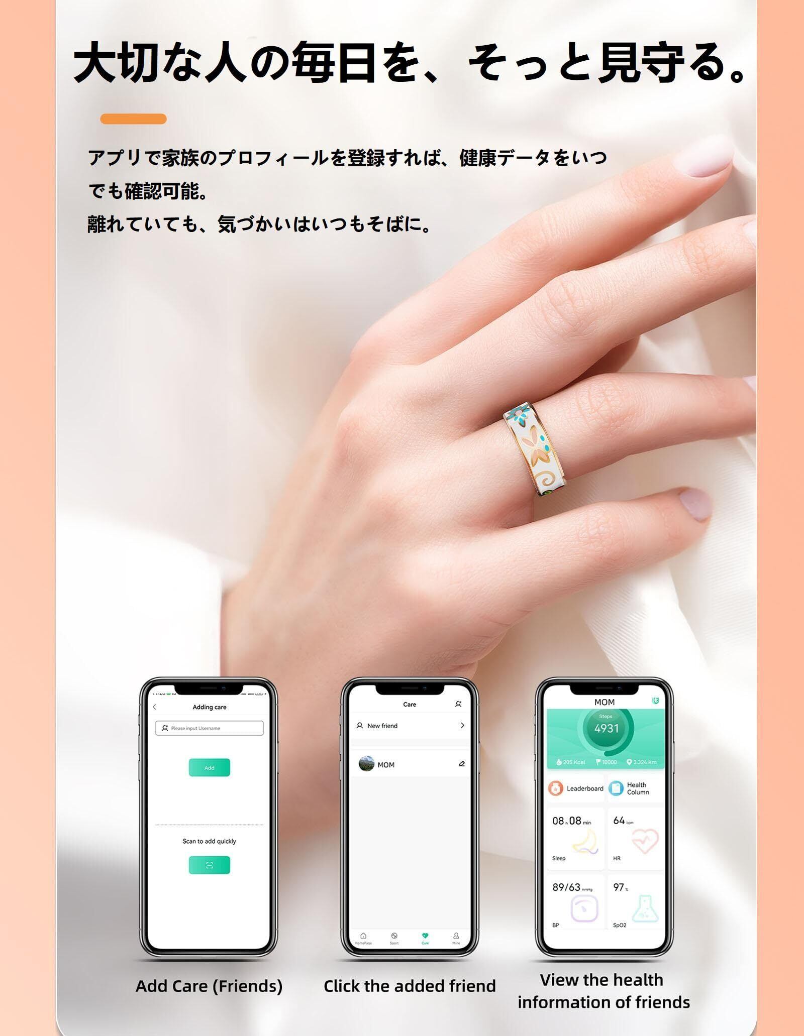 【 エナメルのような艶めき × 先進のヘルステック】睡眠記録から、H-Rの健康に関する通知まで。リングの先進的なセンサーが、自分の健康を一段と深く理解できるようにサポートします。毎日の健康状態の変化を見逃さないように、あなたをサポートする。体に取り込まれた【SP-O2の飽和度レベル】、【B-P】、【H-R】、【️睡眠時間】など、夜間の重要な健康指標をすばやく確認できます。