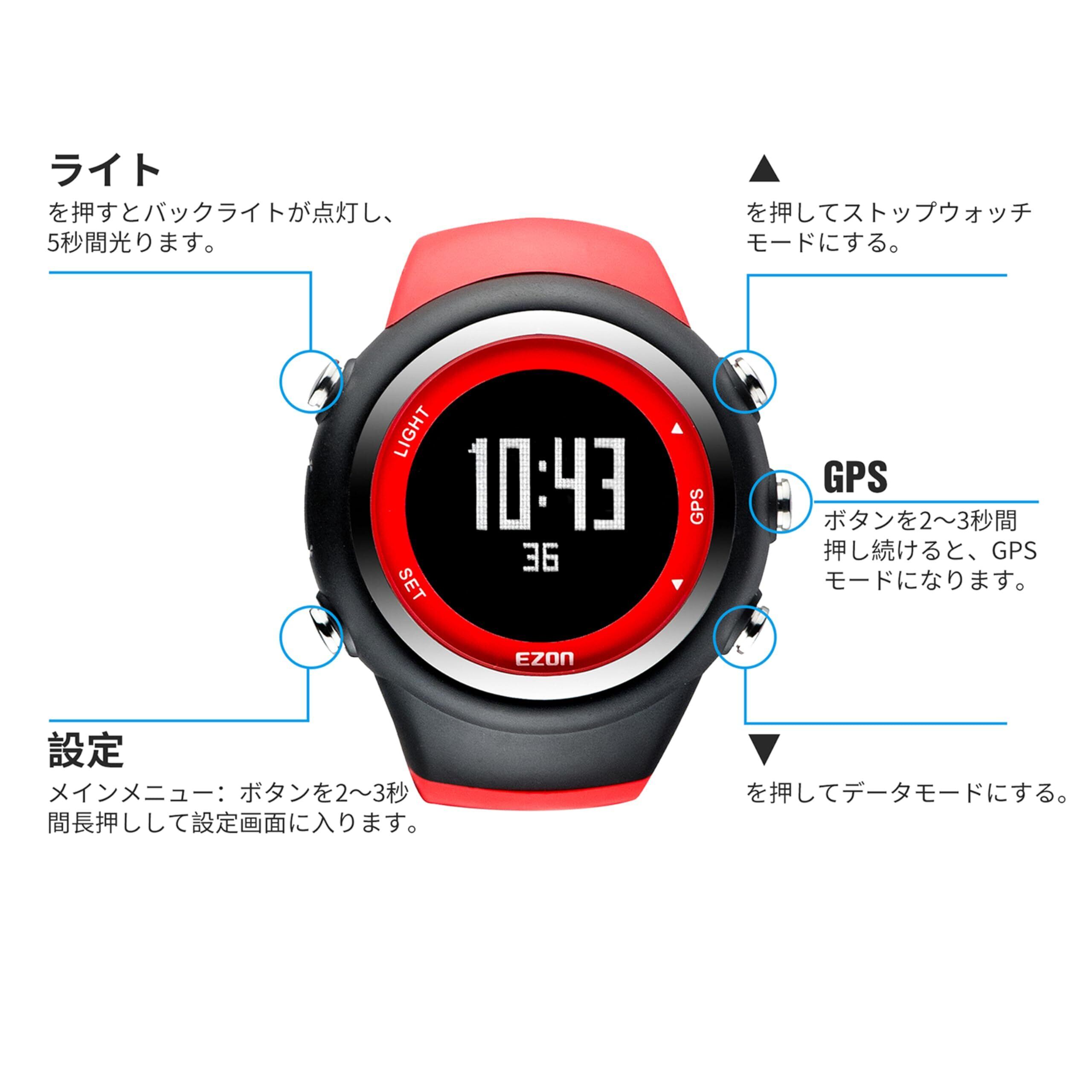 【新着商品】ランニングウォッチ GPS 腕時計 デジタル ウォッチ 50m 防水 高耐久性 軽量 内蔵歩数計 特別な日に贈りたい EZONT031 (レッド)