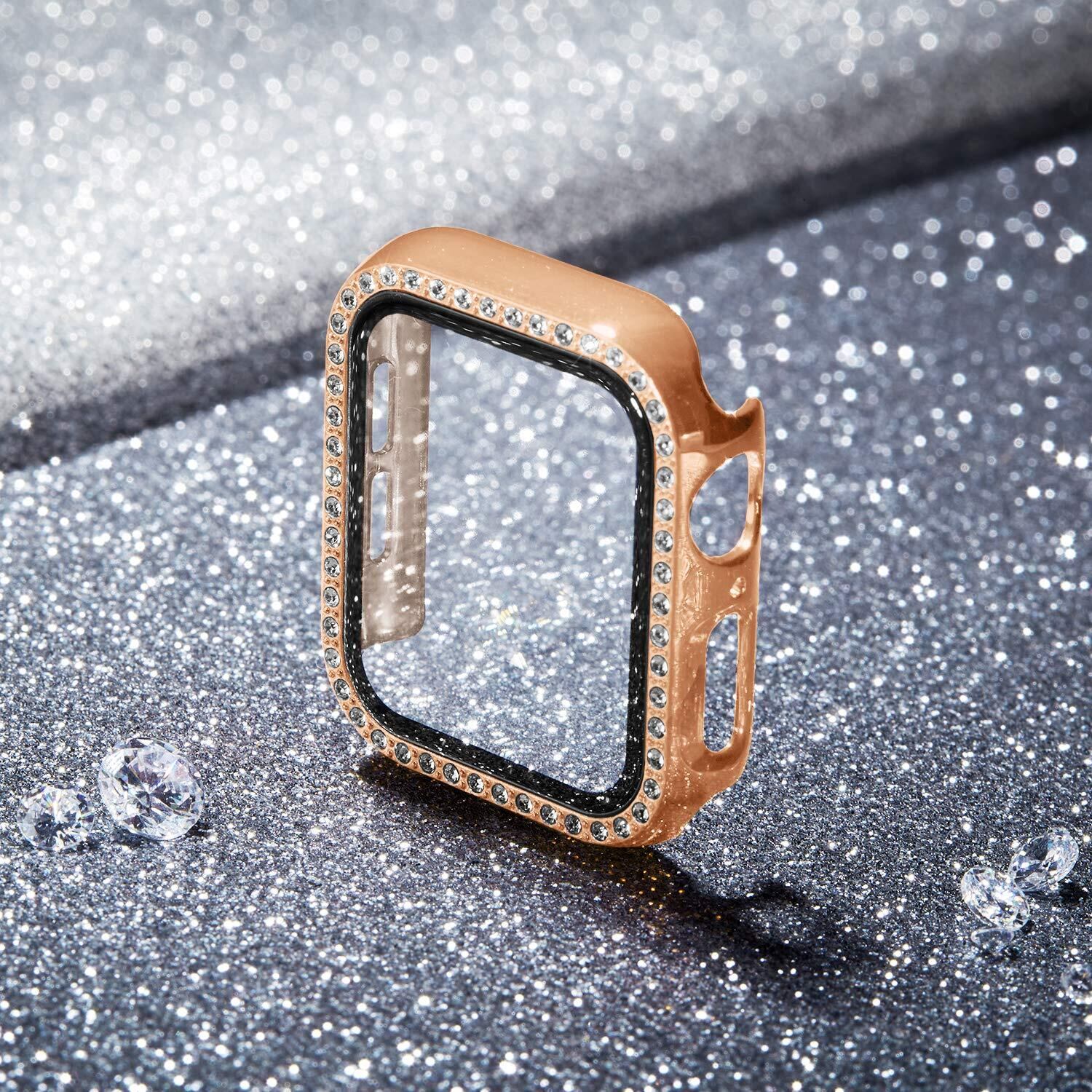 【キラキラカバー】WASPO コンパチブル iWatchケース 40mm 保護フィルム付き クリスタルダイヤ付き アップルウォッチカバー 女性専用 全面保護ケース(40mm Series se/6/5/4,ローズゴールド)