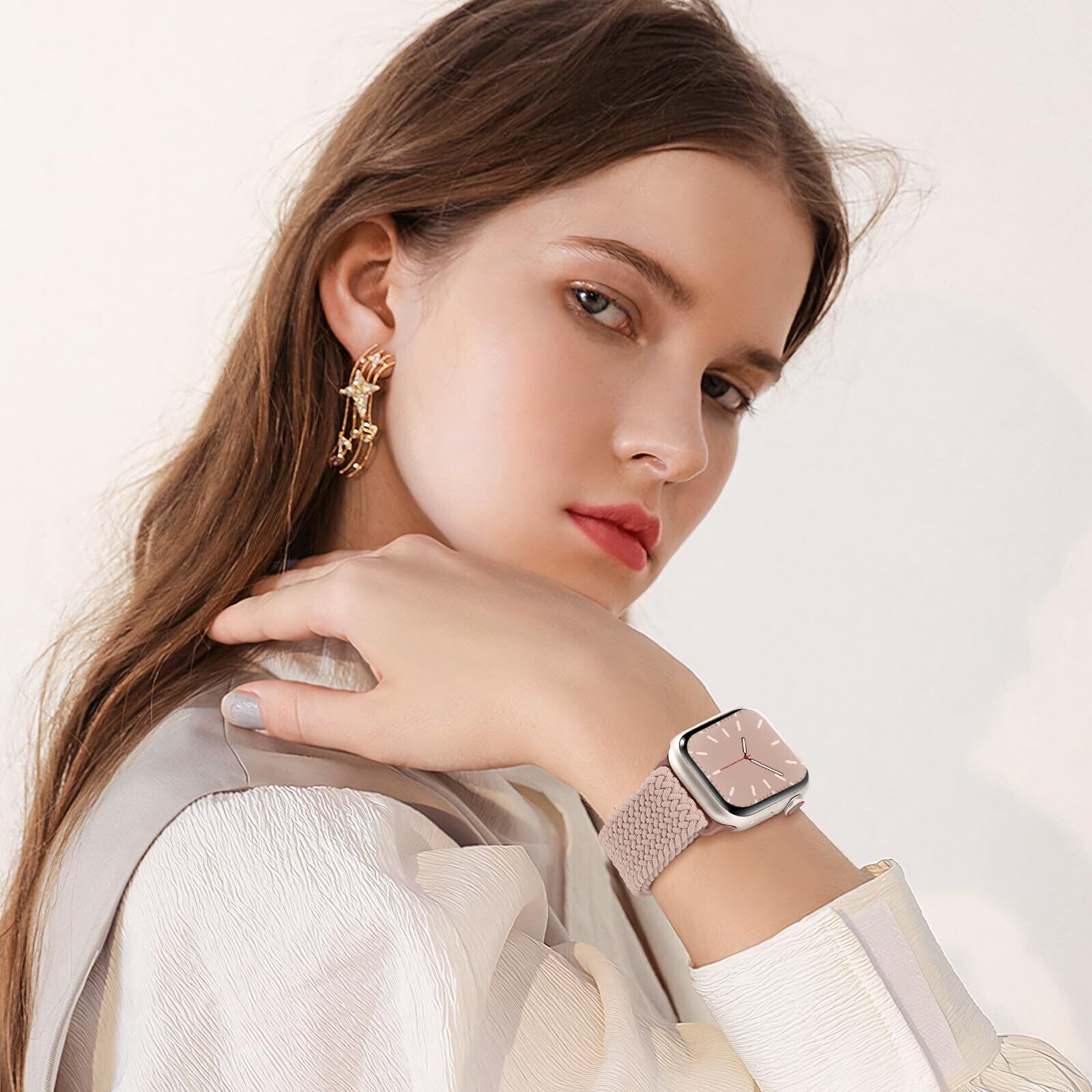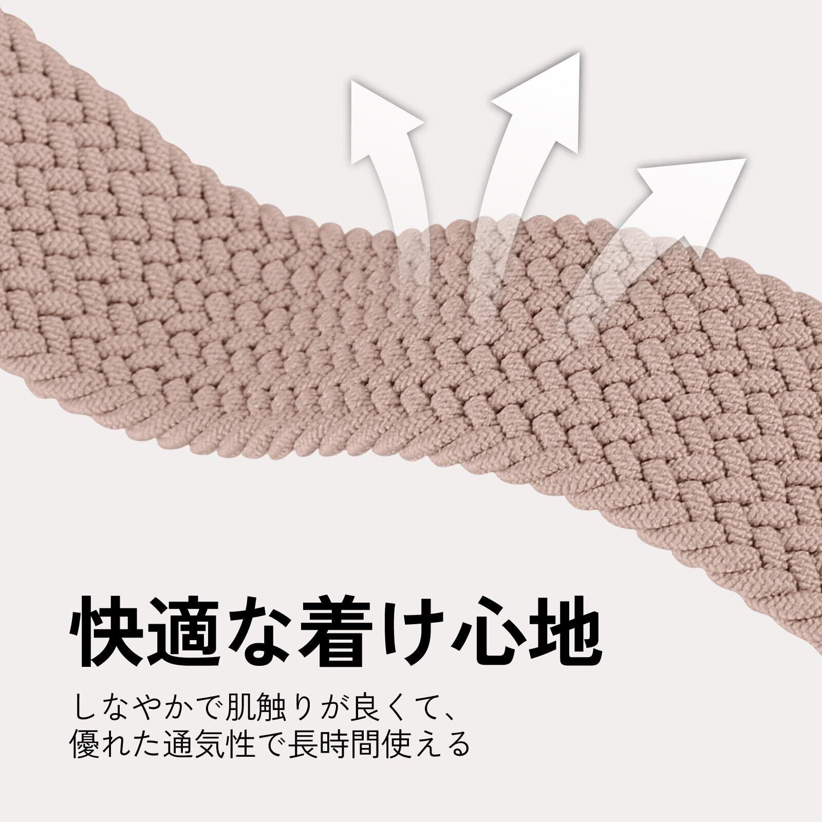【対応機種・サイズ】アップルウォッチ 編み込み バンド。Apple Watch Ultra2 Ultra Series 10 9 8 7 6 SE 5 4 3 2 1 全機種に対応できます。伸縮性である設計で、115mm―228mmの手首サイズに適しています。長さは無段階で自由に調整可能で、どんな手首でもフィットできます。男女兼用のApple Watch バンドです。