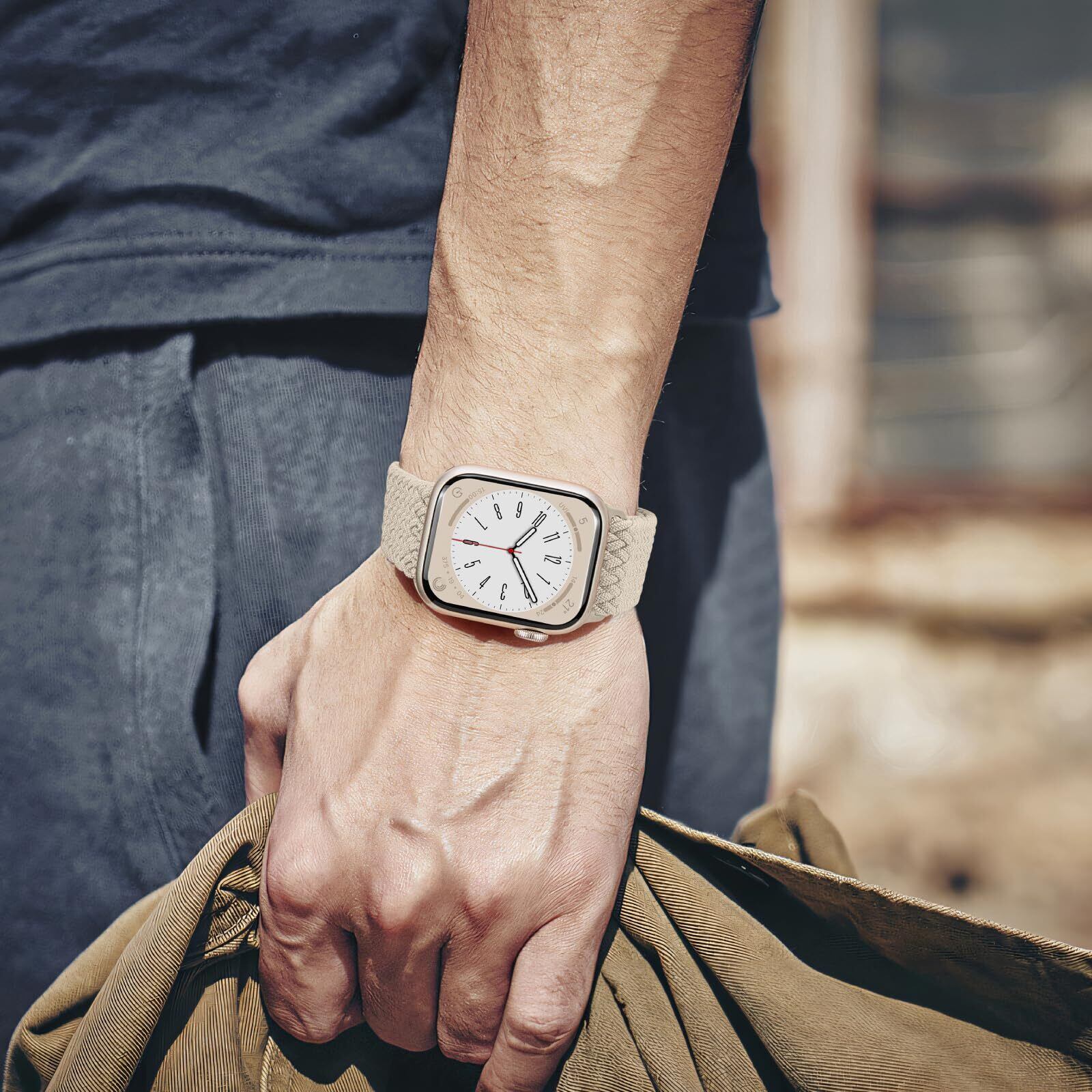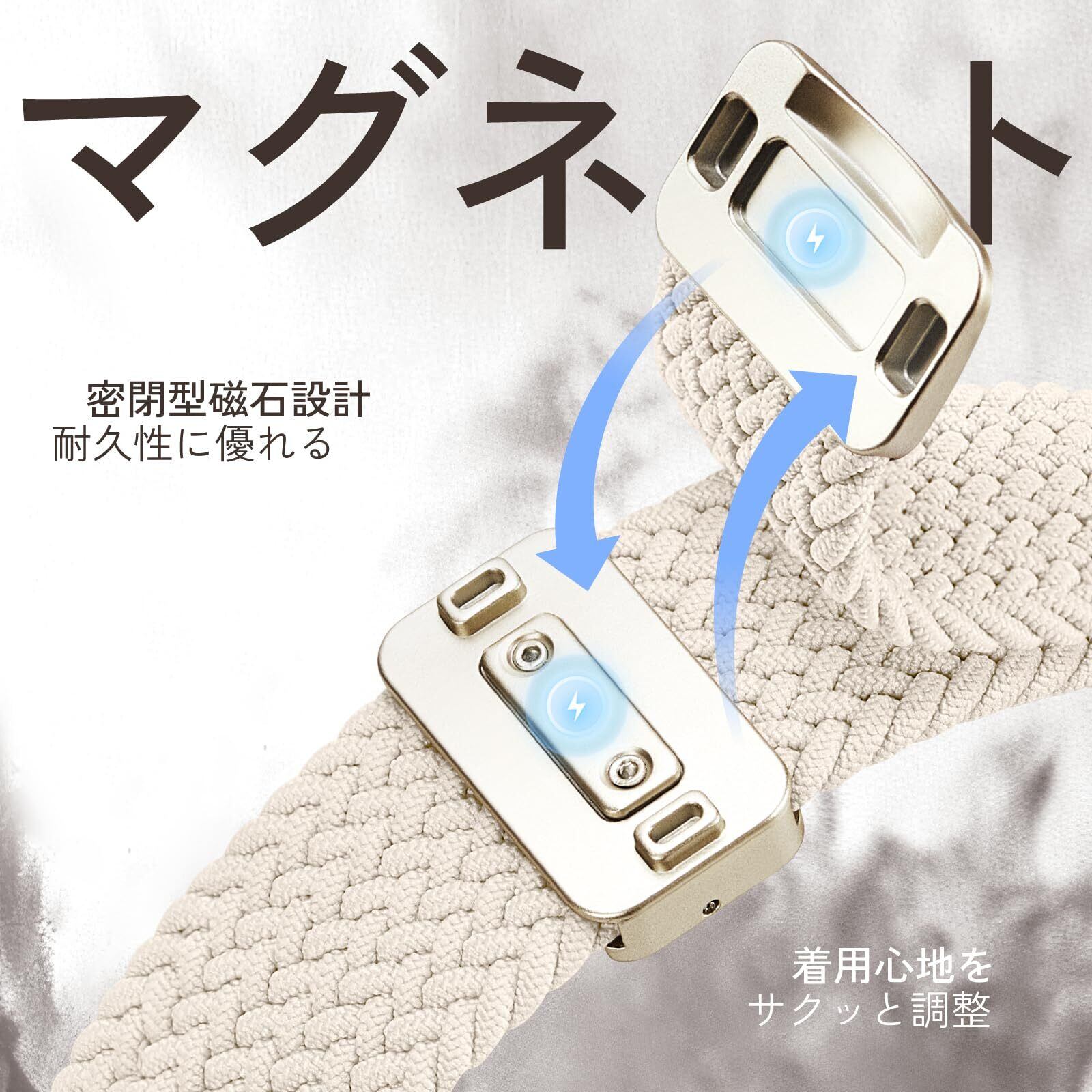 【数量限定】Knossen コンパチブル アップルウォッチ バンド ナイロン 41mm 40mm 38mm 42mm(Series 10)編み込み Apple Watch バンド スポーツ 金属磁気バックル 強力マグネット アップルウォッチ ソロループ 伸縮性 iWatch Series 10 9 8 7 6 5 4 3 2 1 SE Ultraに対応 調整可能 ゴム 柔軟 通気 蒸れない スターライト