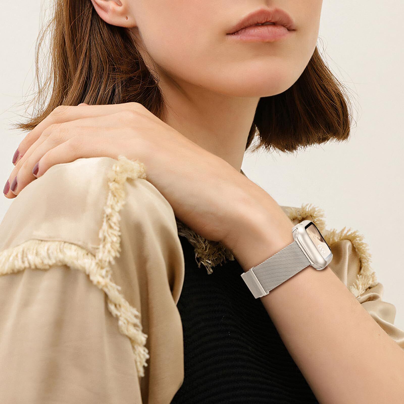 【新着商品】コンパチブル Apple Watch バンド 40mm 41mm 44mm 45mm コンパチブル アップルウォッチバンド ステンレス留め金製 男女兼用 マグネットクラスプ コンパチブル アップルウォッチ用バンド 保護カバー付き アップルウォッチバンド 通気 メッシュ ベルトアップルウォッチ 一体型 Apple Watch Series 9/SE/8/7/6/5/4/3/2/1に対応