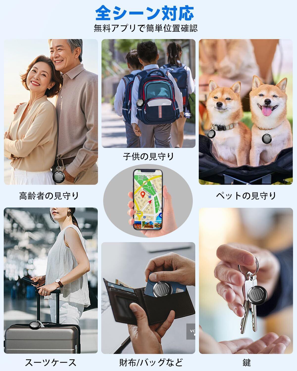 【探せる安心感】サイクリストの必須アイテムとして、駅前駐輪場で一目瞭然。愛犬・愛猫の散歩中のちょっとした隙間も、位置情報で安心を。お子様のランドセルや習い事バッグに忍ばせれば、帰宅ルートをスマートに確認。ご高齢のご家族がお出かけの際、現在地が分かれば見守り負担が軽減します。登山リュックやキャリーバッグといった旅行の相棒にも最適で、空港の手荷物受取時もストレスフリー。日常生活からアウトドア、緊急時まで、あらゆる「見失いがちな瞬間」をカバーする万能な見守りツールです。紛失防止から安全確保まで、日本での多様なライフスタイルに寄り添います。