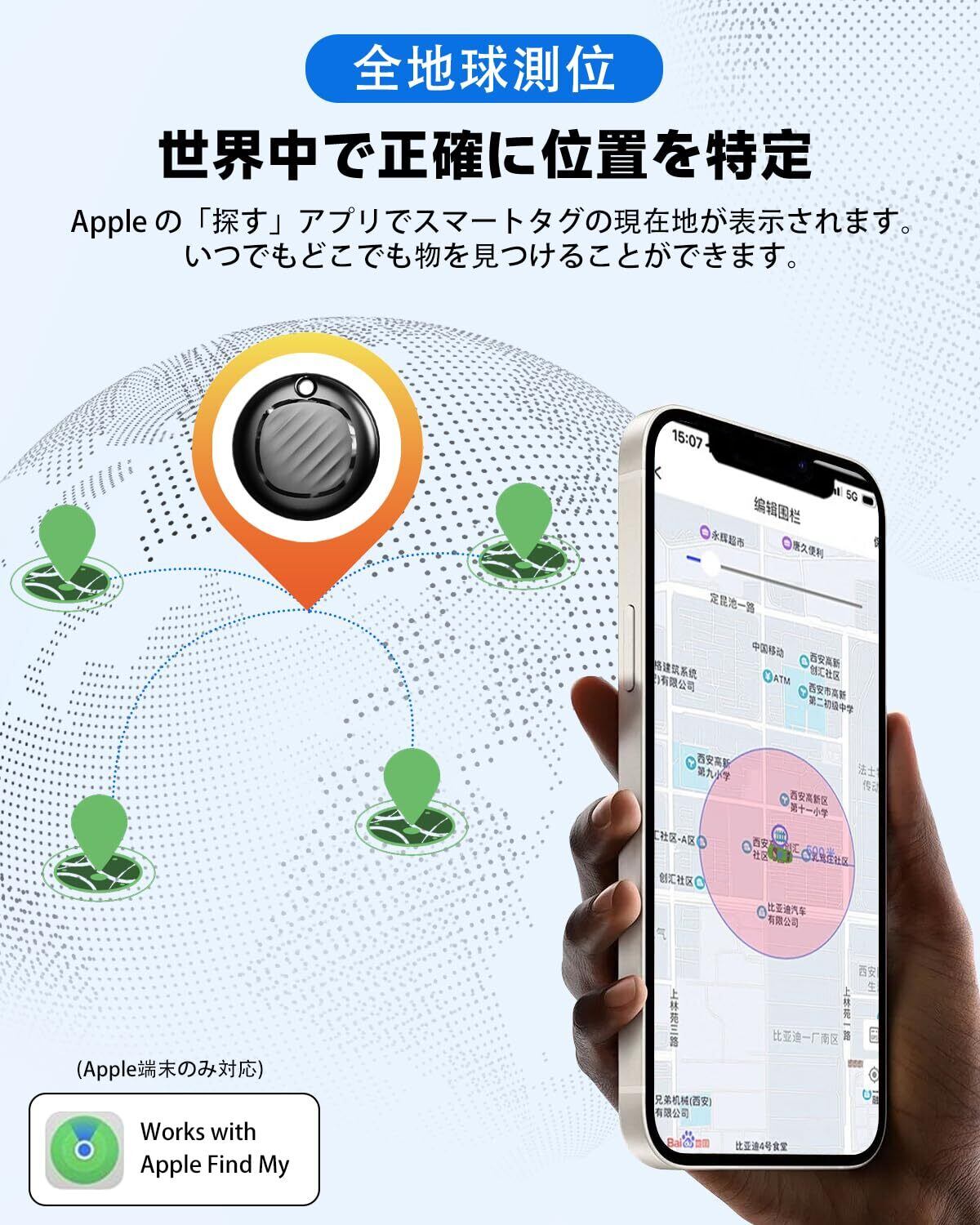 【全地球精確な測位&無制限の高精度】Appleの圧倒的な「探す」ネットワークを活用し、日本国内はもちろん海外旅行中でもリアルタイム位置情報を把握可能。追加アプリのダウンロードや面倒な設定は一切不要。iPhone、iPad、Macデバイスの「探す」ネットワークを利用して、AirTagの現在地が地図上にピンポイント表示されます。紛失防止タグは距離を問わず世界的に正確に位置を探し出します。