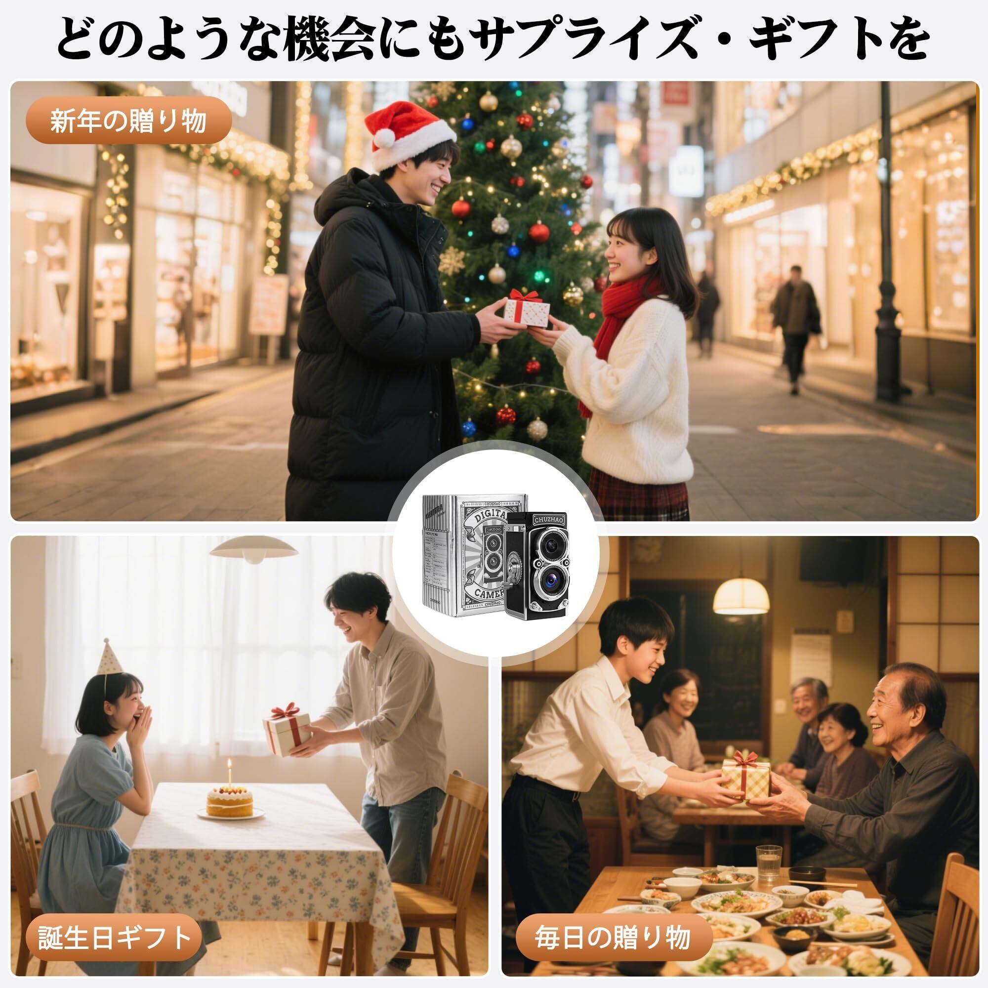 理想的なギフトの選択:パッケージには、ヴィンテージカメラ、SDカード、スタイリッシュなストラップ、Type-Cケーブルが含まれており、すべてが美しいギフトボックスに丁寧に梱包されています。誕生日、クリスマス、その他の特別な機会に、男の子、女の子、ティーンエイジャーに贈るのに最適なギフトです。このギフトは、多くの喜びをもたらし、永遠の思い出を記録します