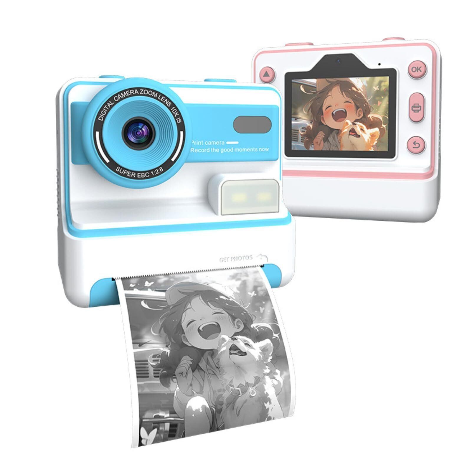 キッズカメラインスタントプリント、2.4インチIPSスクリーン1080P HD 48MPフォトインスタントカメラ子供用、16Xデジタルズームキッズデジタルカメラデュアルレンズ、幼児用カメラ、クリスマスギフト (青)