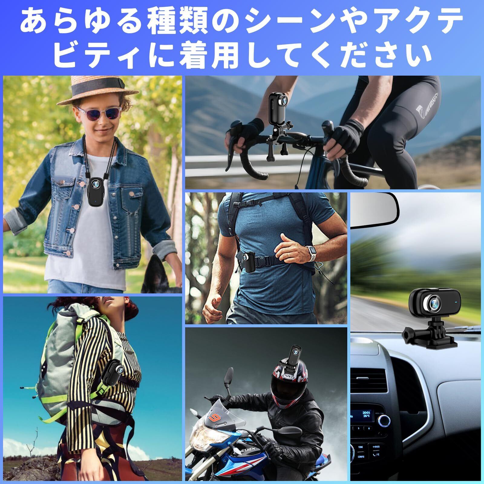 アクションカメラ 4K ウェアラブルカメラ 64G SDカード付属 120°広角 小型ビデオカメラ ボディカメラ 親指サイズ IP65防水 循環録画 wifi搭載 スマホ対応 複数アクセサリー 設置便利 Vlog/旅行/アウトドア/ペット/スポーツ 生活記録 日本語取扱説明書