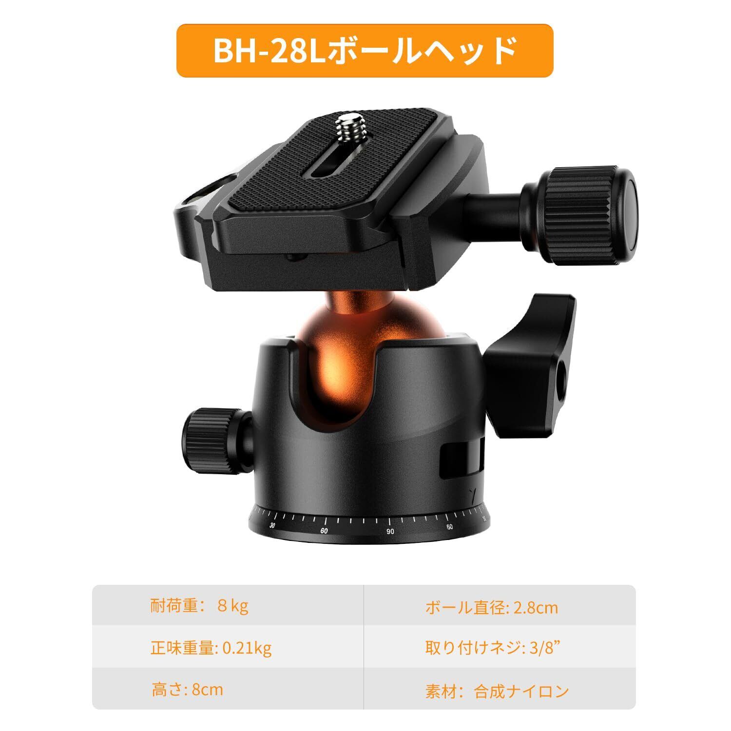 【360度回転・8Kg耐荷重】コンパクト三脚は28mmのボールヘッドを搭載し、8kgの耐荷重を実現し、360度回転可能です。 パノラマ撮影時に一眼レフカメラの動きの範囲を広げることができます。