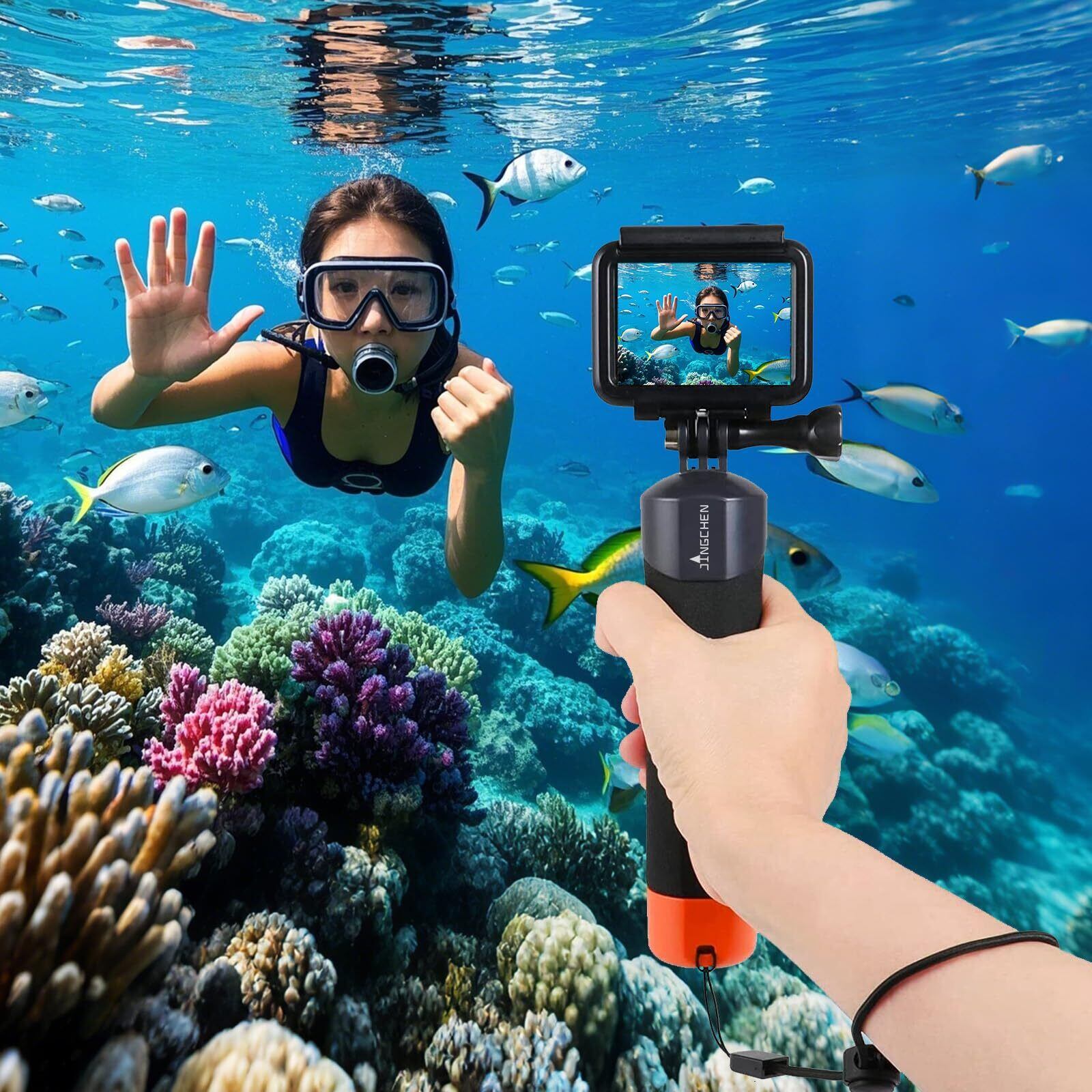JINGCHEN フローティングハンドグリップ 水中ダイビング 浮き ハンドグリップ 自撮り棒 gopro アクセサリー 防水 セルカ棒 dji osmo action 5 pro/4/3/2 gopro13/12/11/10/9/8/7/6/5/4/3/Insta360 Ace Pro/AKASOなどのアクションカメラ マウント