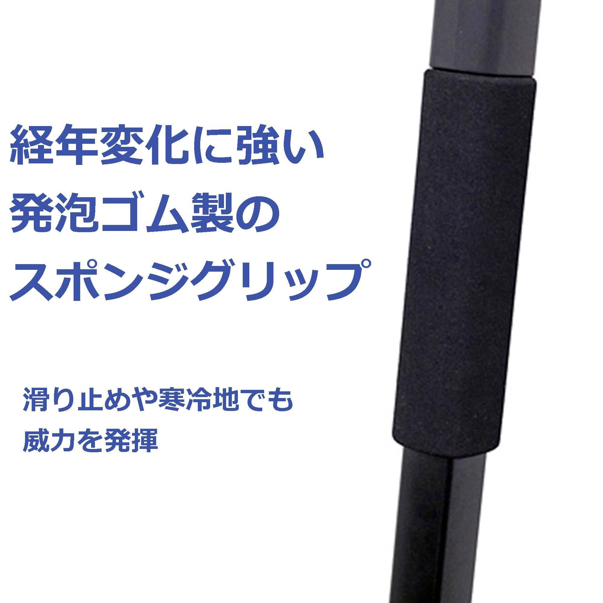 1号脚には、経年変化に強い発泡ゴム製のスポンジグリップが装着されています。便利なストラップが付属。