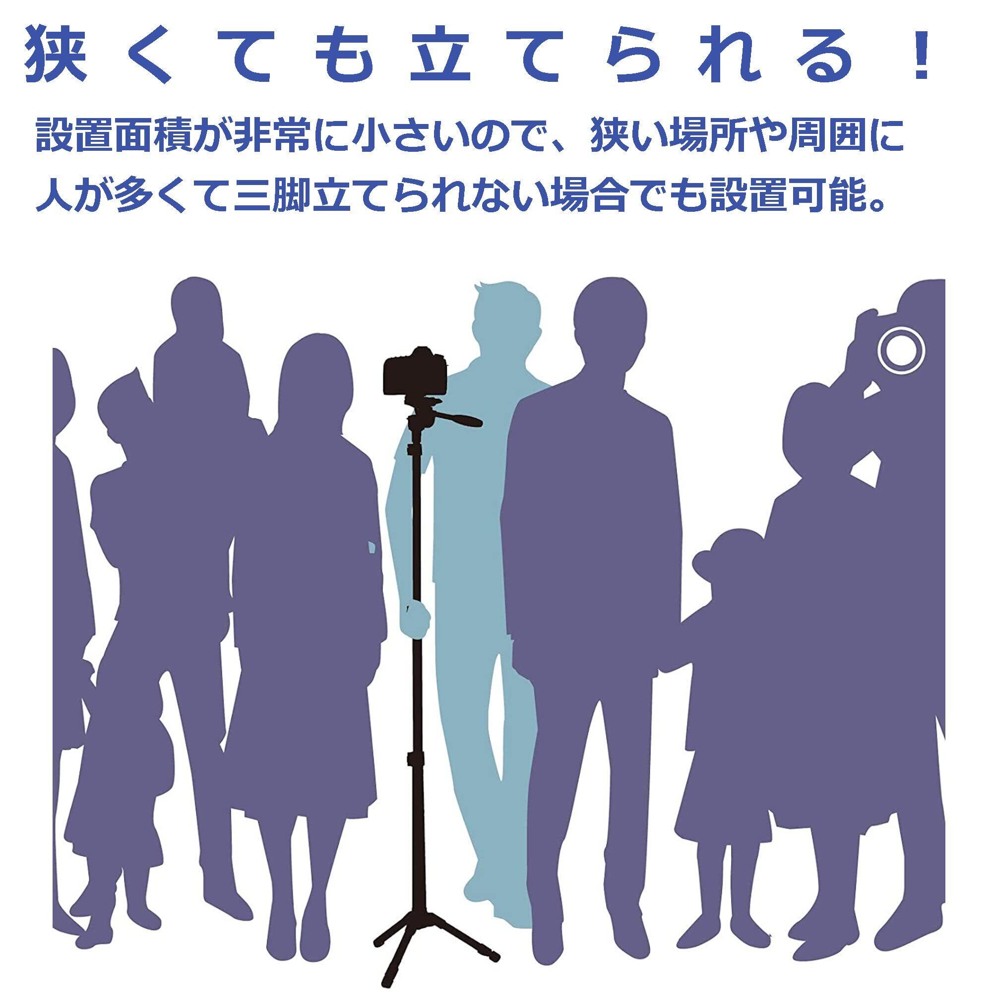 三脚に比べ設置面積が非常に小さいので、狭い場所や周囲に人が多くて三脚がセッティング出来ないような場合にも大変便利です