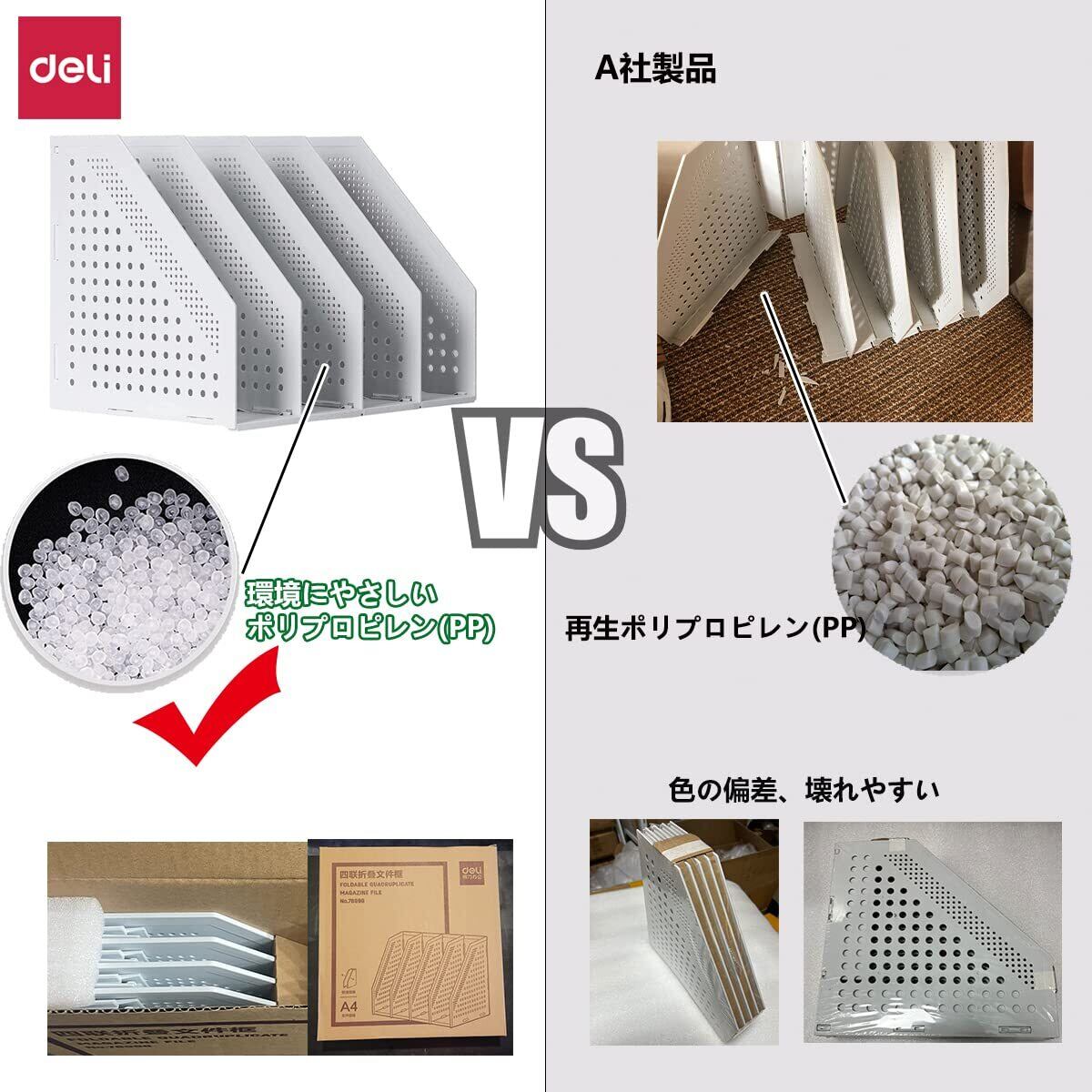 【Deli 正规品】 デスク上置棚 A4ファイルボックス 折りたたみ式–この柔軟なマガジンホルダーは省スペースで、4つのコンパートメントを自由に使用できます。