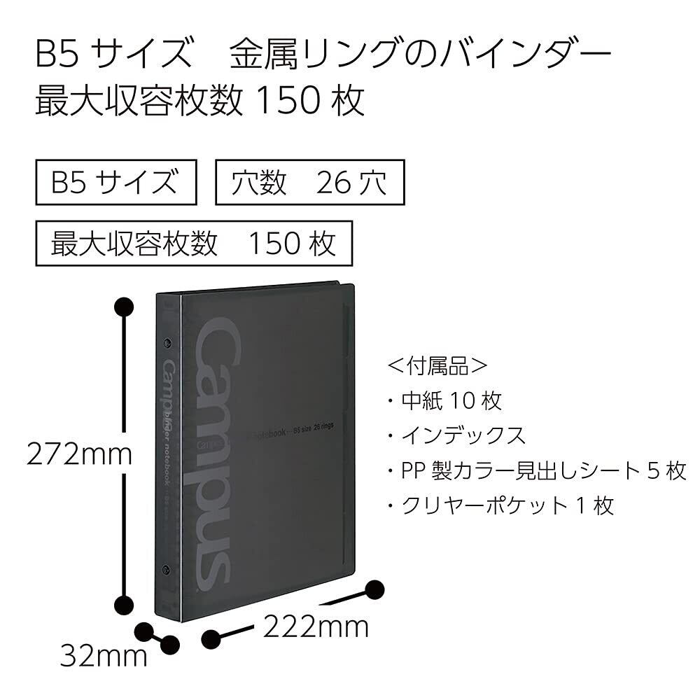 コクヨ(KOKUYO) ルーズリーフ バインダー キャンパス 金属リング ワイド B5 26穴 最大150枚 黒 ル-633D
