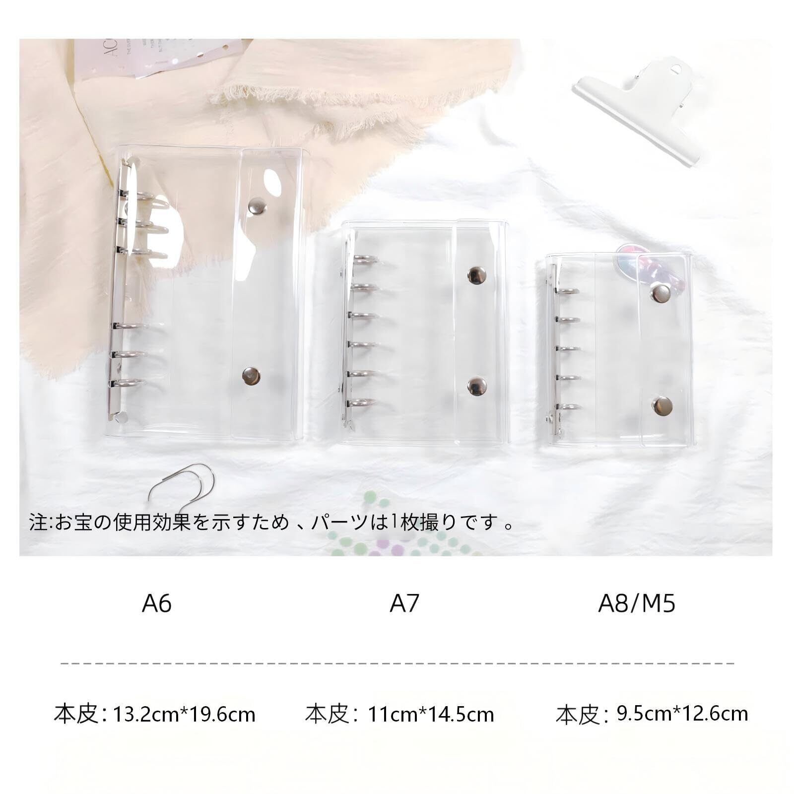 シール帳 バインダー A6 M5 A7 3サイズ選べる クリア シールバインダー シール帳 透明 女の子向け 手帳・アルバム・収納用 ダブルボタンデザイン DIY活用 (A7)