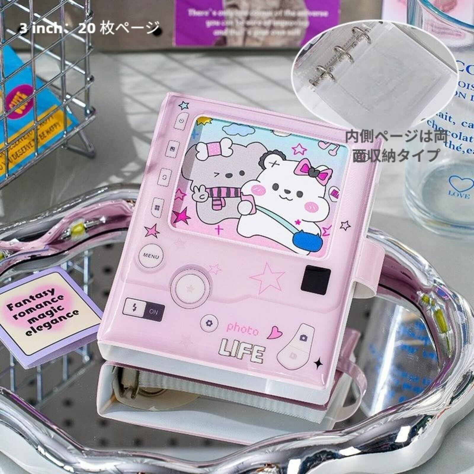 シール帳 透明 バインダー 女の子用 高颜値レトロCCD 一宮格カードブック 3インチ 20枚内頁 最大40枚収納 (ピンク)