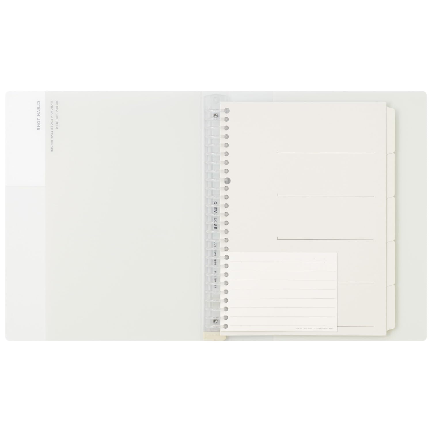 【付属品】マルマンの書きやすいルーズリーフ6mm横罫50枚、ルーズリーフミニ10mm横罫5枚、ラミネートタブインデックス5山