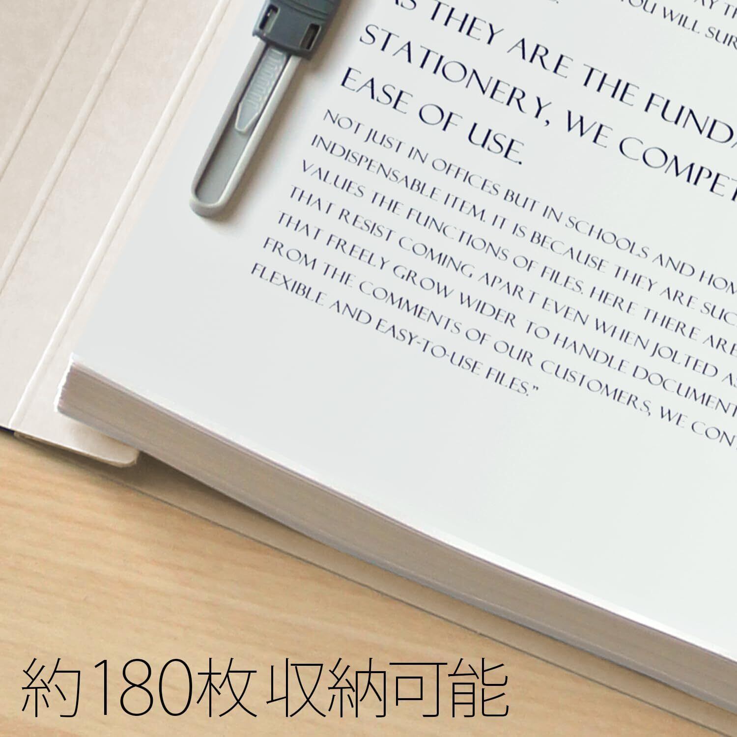 縦267×横197×背幅18mm / 2穴 / 穴間隔:80mm / 収容枚数:180枚 / 表紙:ファイルカード紙(紙パルプ再生紙) / とじ具:100%再生ポリプロピレン(PP) / 入り数:10冊 / グリーン購入法適合商品 / エコマーク認定商品
