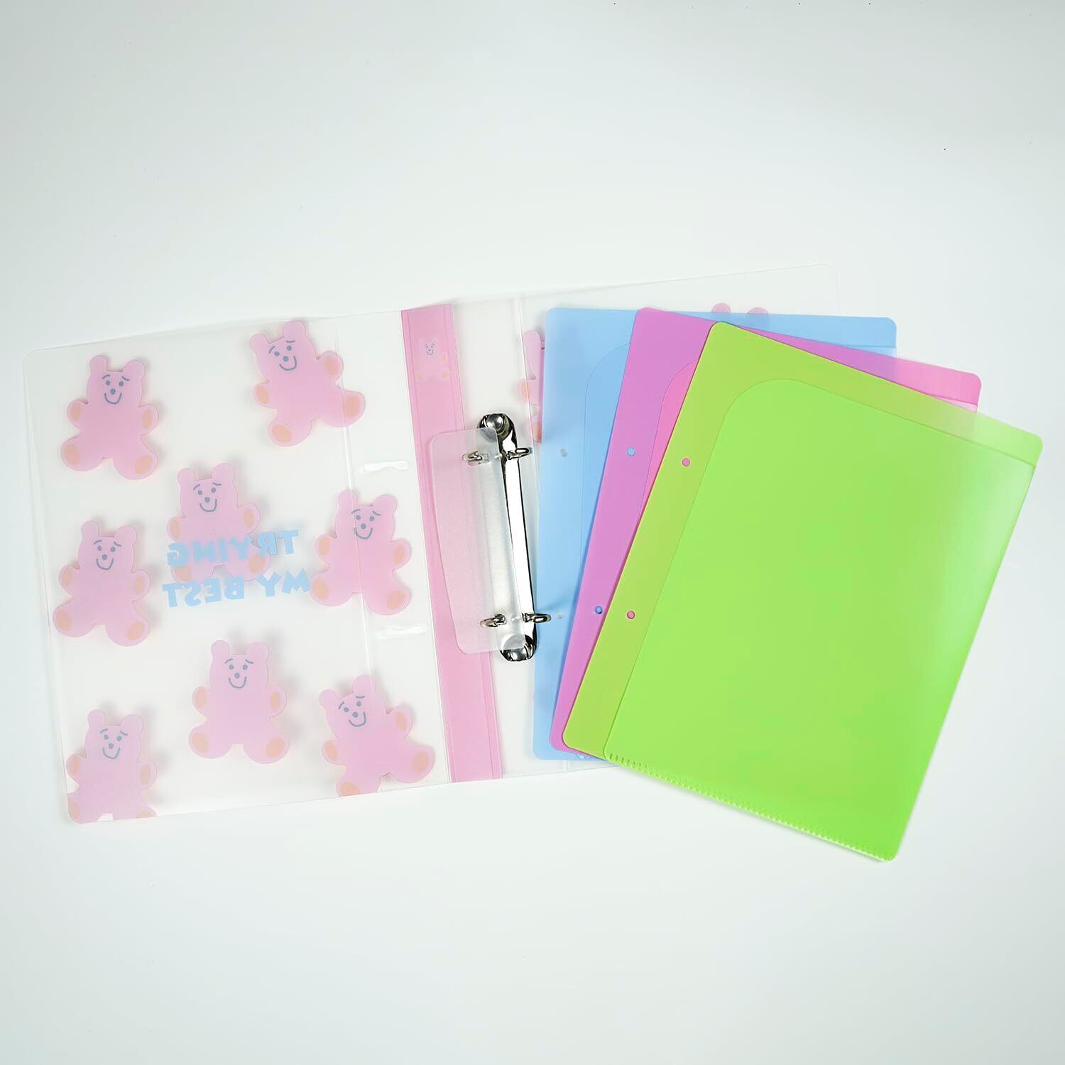 シック グリーティングライフ 2穴 バインダー A5 サイズ クリア クマ MMZ-460 ライトグリーン
