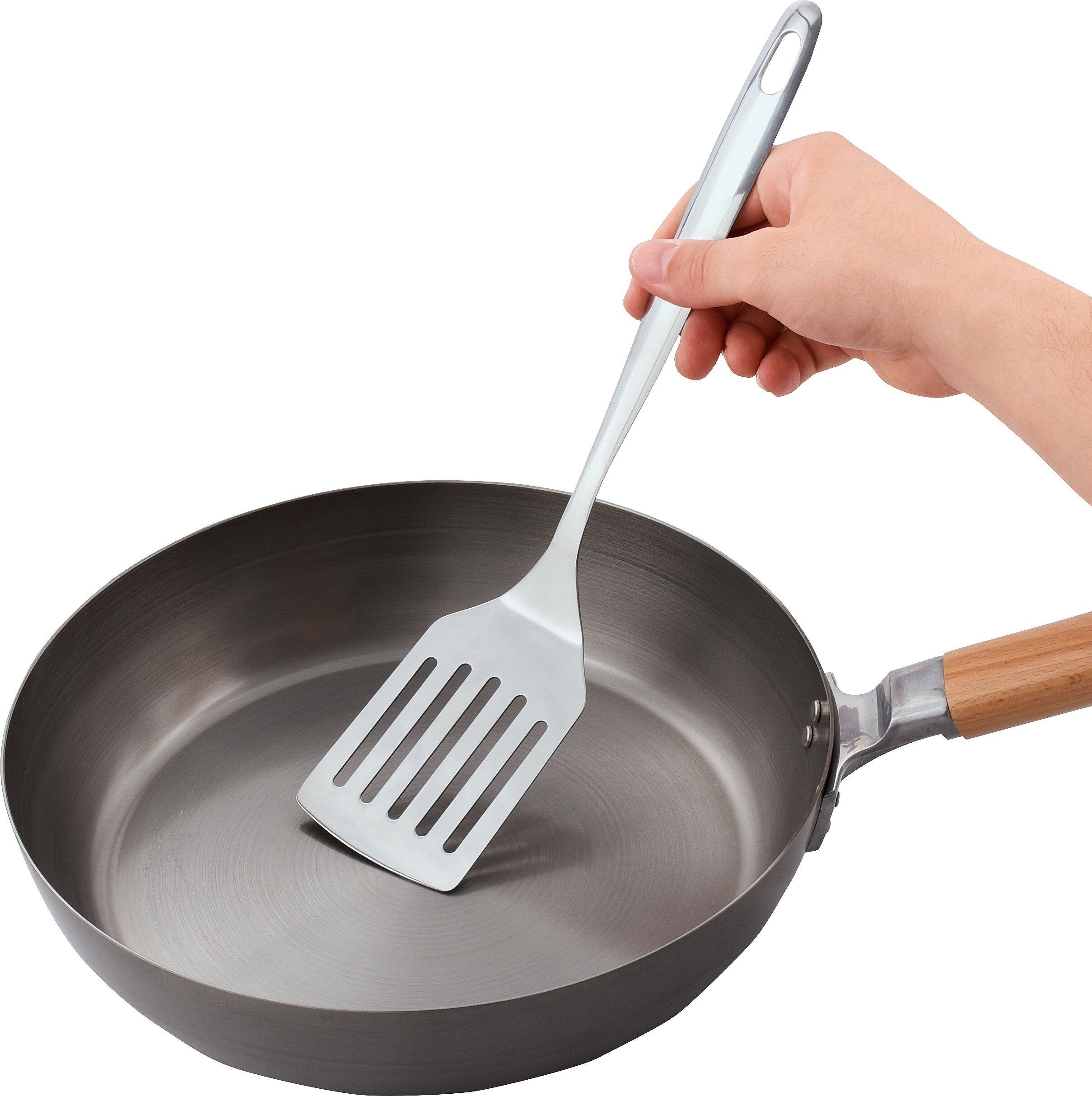 質と使いやすさにこだわった厨房用調理用具「味道(あじどう)」シリーズ。プロの方のご利用はもちろん、一般のご家庭でも活躍する逸品です。錆びにくく丈夫なステンレス製のターナーです。