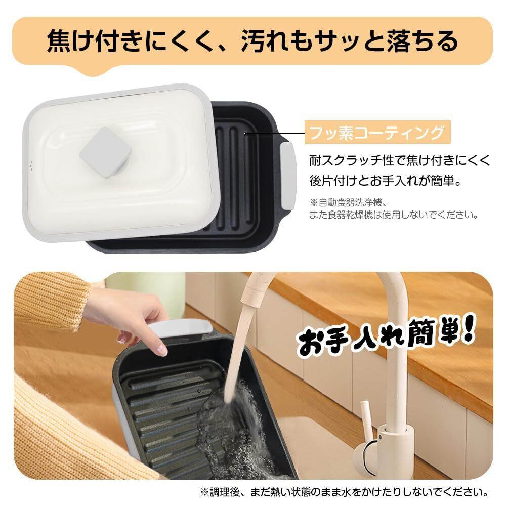 【簡単お手入れ&耐熱ミント付き】フッ素コーティング加工により焦げ付きにくく、お手入れもラクラク。濡れた布でサッと拭くだけで清潔に保てます。お客様のご意見を参考にして、景品として耐熱ミトンをお付けしました。別途で耐熱ミトンをご購入いただく必要はございません。初心者の方にもとても便利にお使いいただけます。※長くご愛用いただくため、熱い状態での洗浄やつけ置き洗いは避けてください。