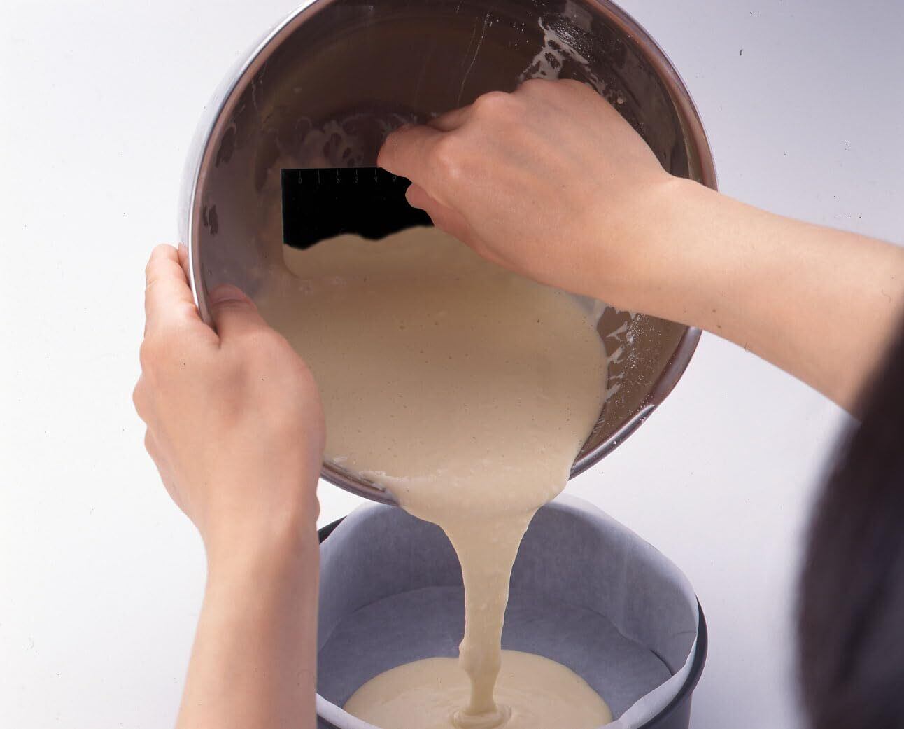 ケーキ生地をボールから焼き型へ流し込むときや、生地を平らにならす時、パン生地のカットにも便利なドレッジ。