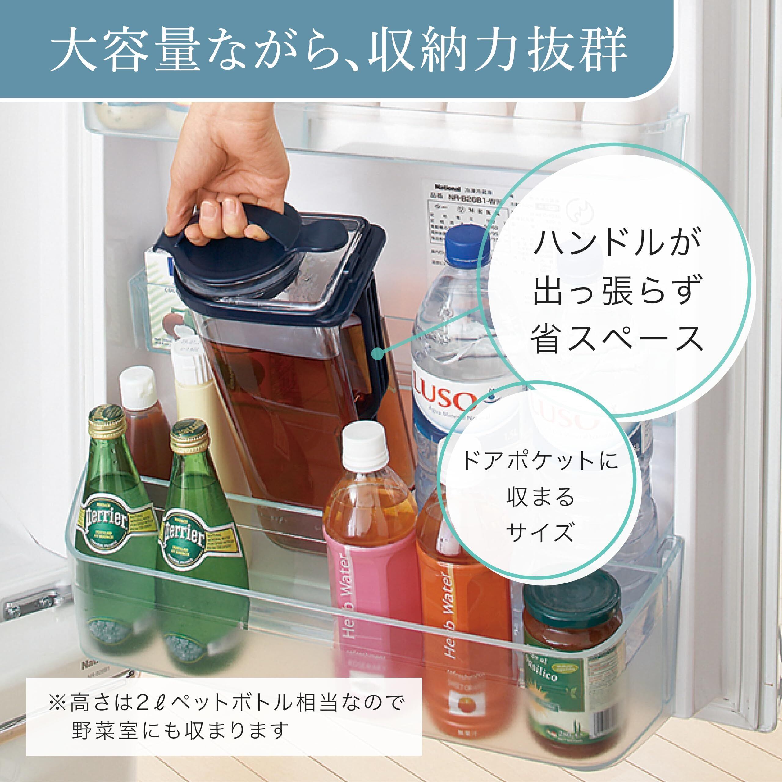 【ドアポケットに最適サイズ】高さは2.0Lペットボトルより低く、ドアポケットや野菜室にもすっきり収納。