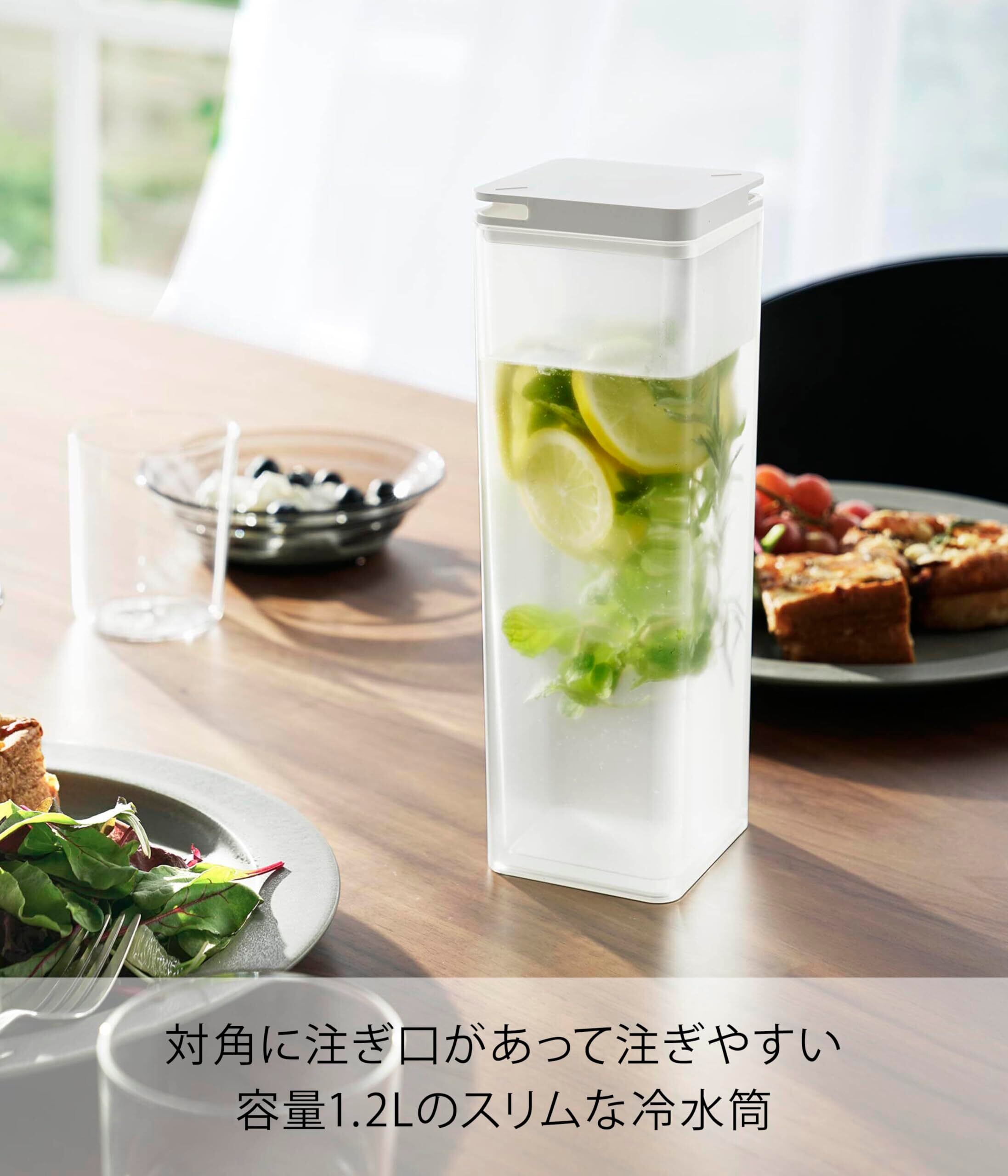 山崎実業(Yamazaki) 水はね防止フィルター付き 両方から注げる 冷水筒 ホワイト W8.5×D8.5×H25.3cm タワー tower ピッチャー スリム 1.2L 食洗機対応 冷水専用 10237