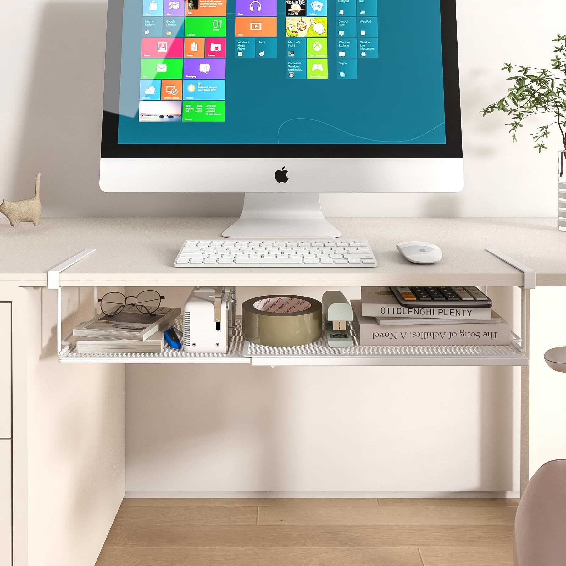 SHINEWON 伸縮式 吊り下げ収納 吊り戸棚下ラック キッチン 棚下収納 拡張可能 高めの型 内寸約W(37.5-69.5)×D20.5×H15cm ホワイト