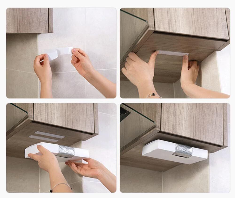 【多目的使用】このゴミ袋収納ケースは、キッチンだけでなく、リビングルーム、バスルーム、玄関など、さまざまな場所で使用できます。両面テープを使えば、吊戸棚の下や壁に簡単に取り付けることができ、場所を選ばずに便利に使えます。
