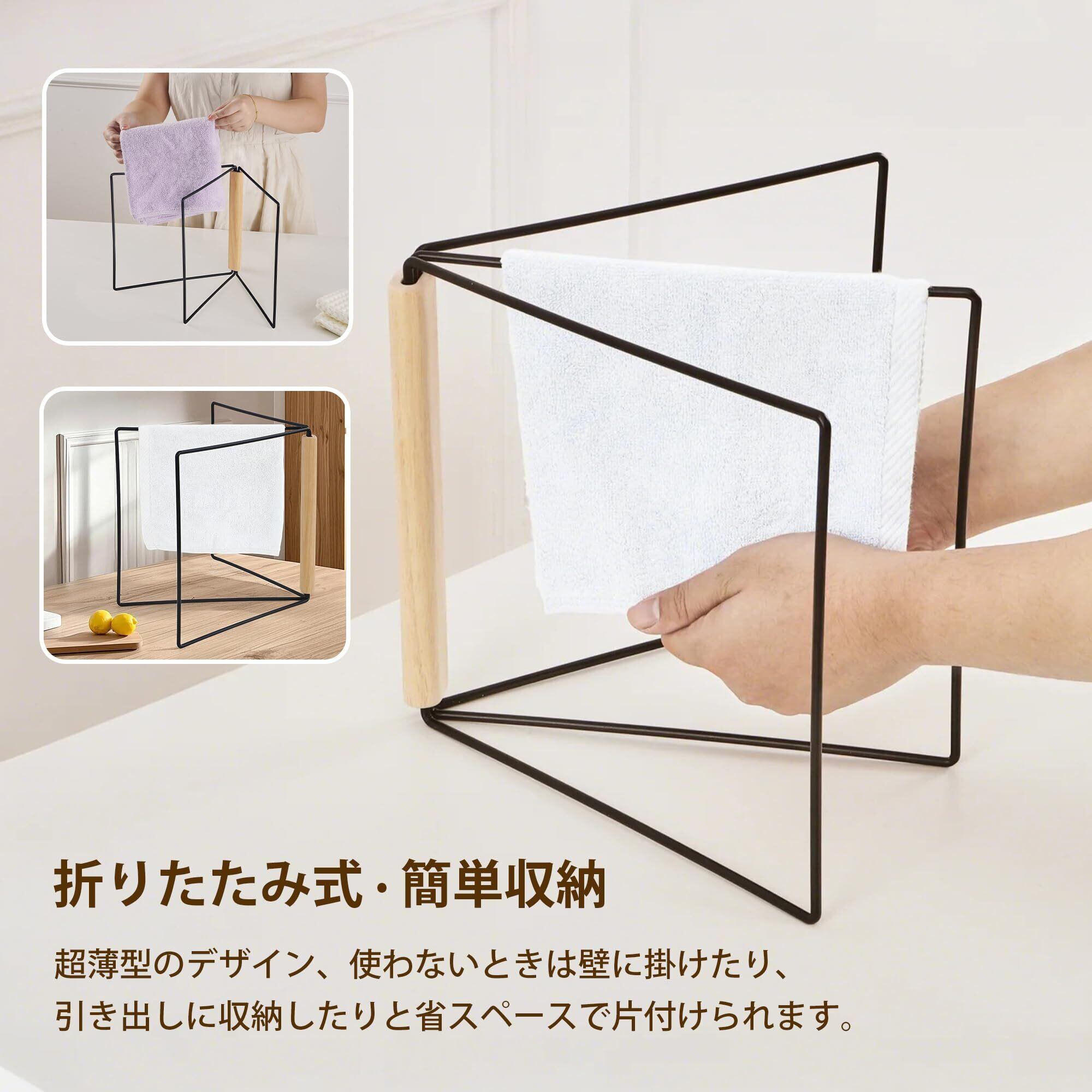 VECELO タオル掛け キッチン 折りたたみ式 だいふきん スタンド 収納便利 スチール製 木製ハンドル付き
