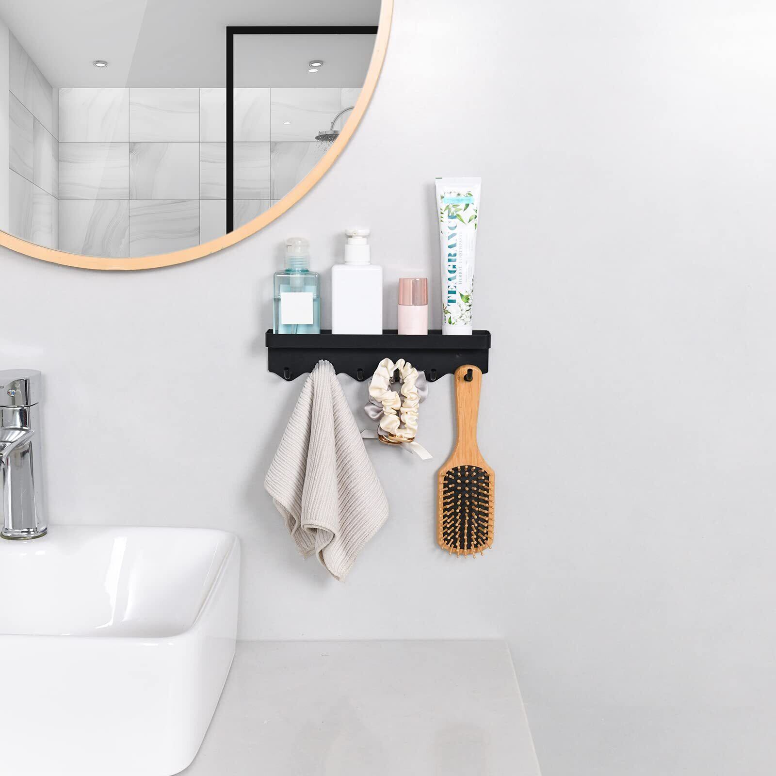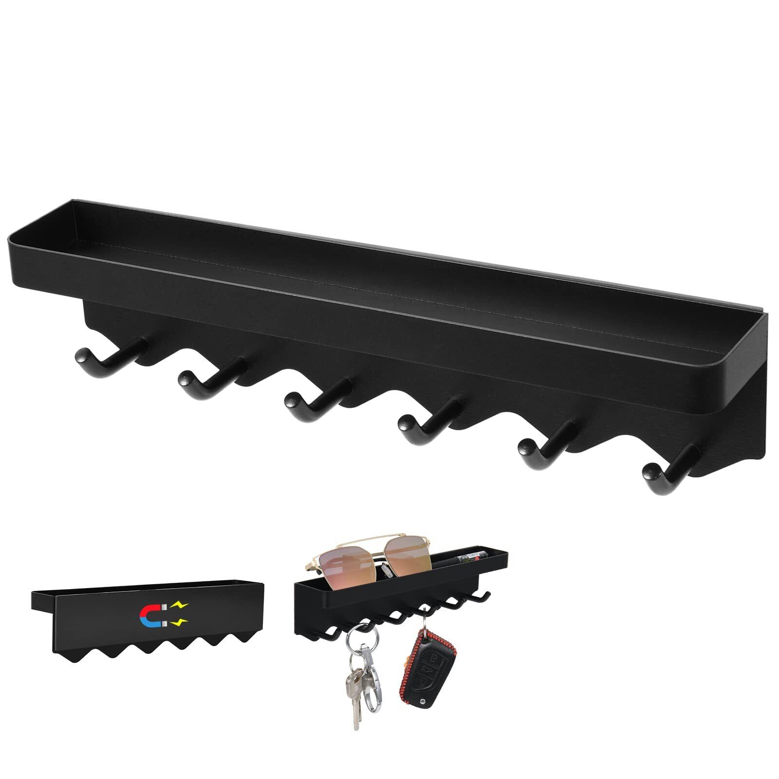 【新着商品】マグネットフック キーフック&トレイ、磁石フック、キッチンツールフック 強力磁石壁掛け 穴開け不要 玄関、キッチン、バスルームフック 収納(24.5cm&トレイ,ブラック)