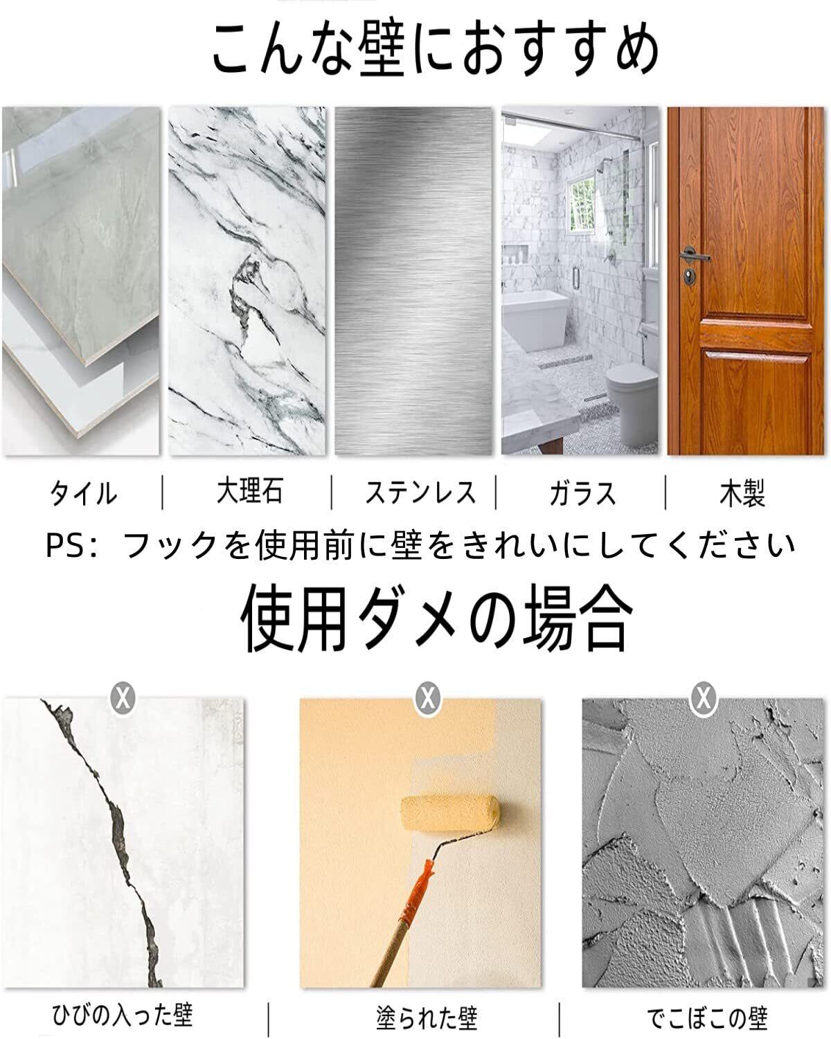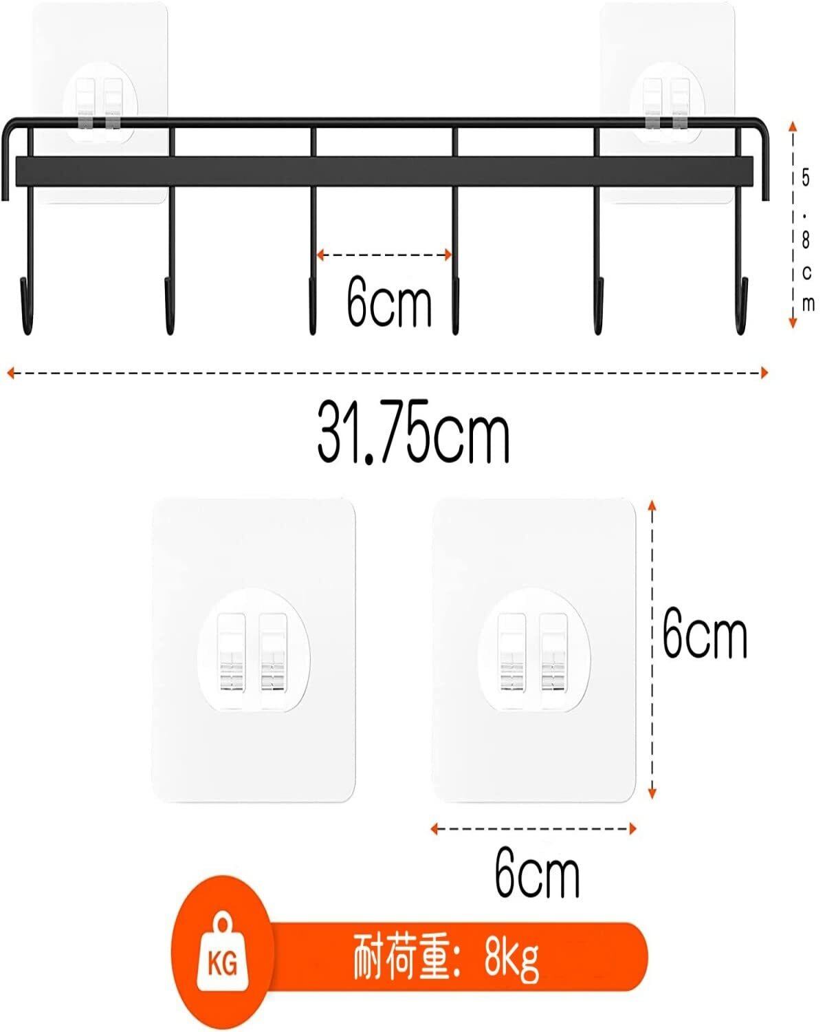 【強力固定】フックは強力なテープ付きで、耐荷重は約8kgまでも大丈夫です。以上の通りにフックを取り付ければ、落ちるのことを心配しなくていいです。キッチンツールフック付きのフックはしっかりでいくら物をぶら下げても落ちません。