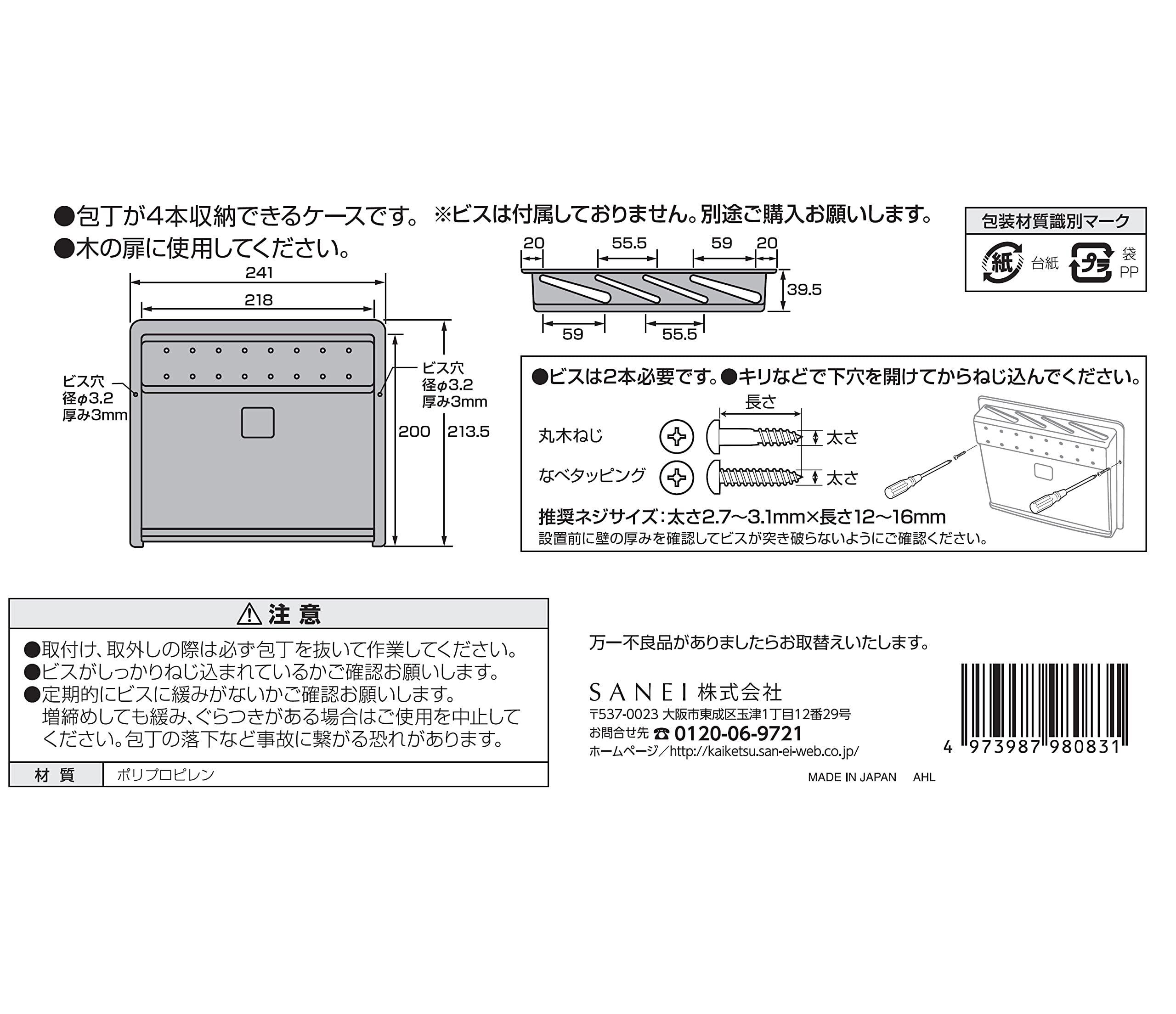 【新着商品】SANEI(サンエイ) 包丁差し 包丁4本収納用 薄型 シンプル ビス別売 木製扉用 ポリプロピレン製 PW83