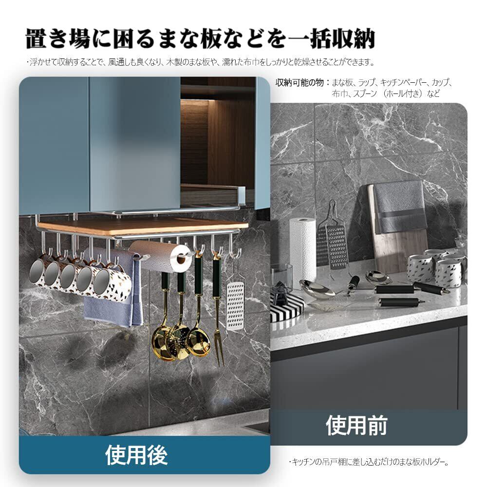 【新春セール】GOENDR まな板スタンド 戸棚下まな板ホルダー まな板置き まな板収納 浮かせる キッチンツール収納 戸棚下キッチンペーパーホルダー 吊り下げラック 布巾ハンガー 鍋蓋収納 ステンレス製 穴あけ不要 ネジ止め不要 完成品【奥行き25.8㎝】