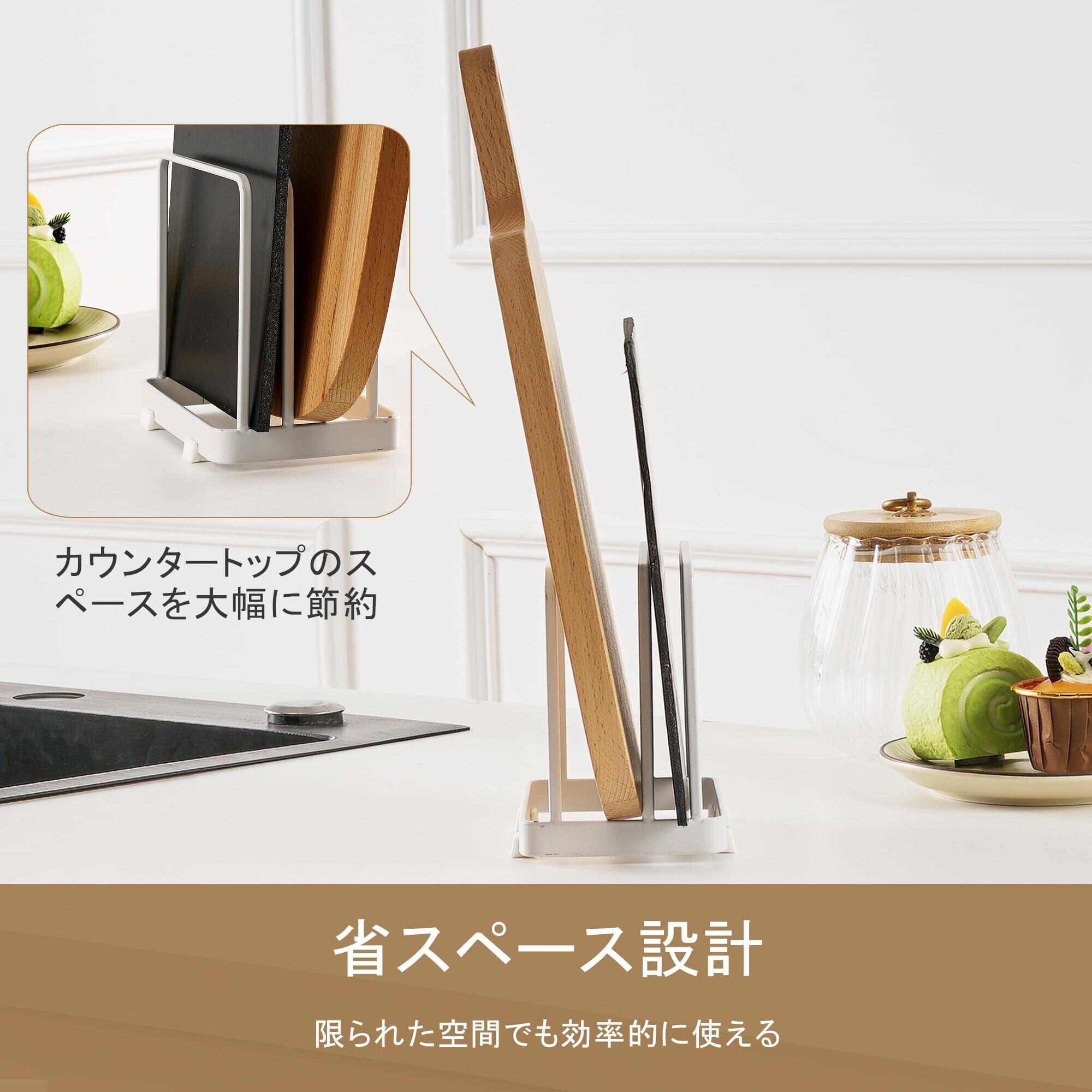 省スペース設計、通気性抜群でまな板を清潔に保つ、多用途で柔軟に活用可能、シンプルで洗練されたデザイン