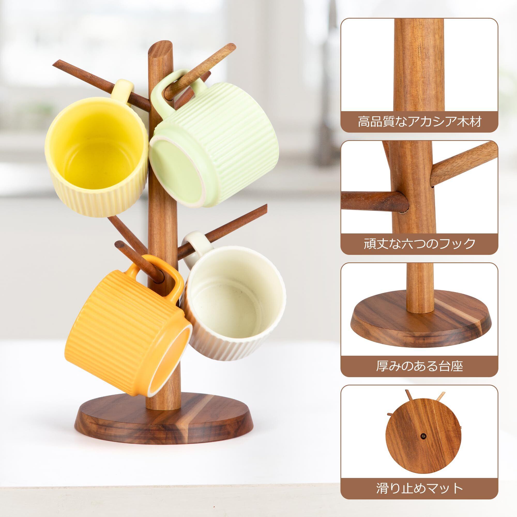 【新春セール】E-ROOM TREND マグカップツリー カップスタンド コップスタンドフッ フック6個付き グラススタンド キッチン 収納 (アカシア)
