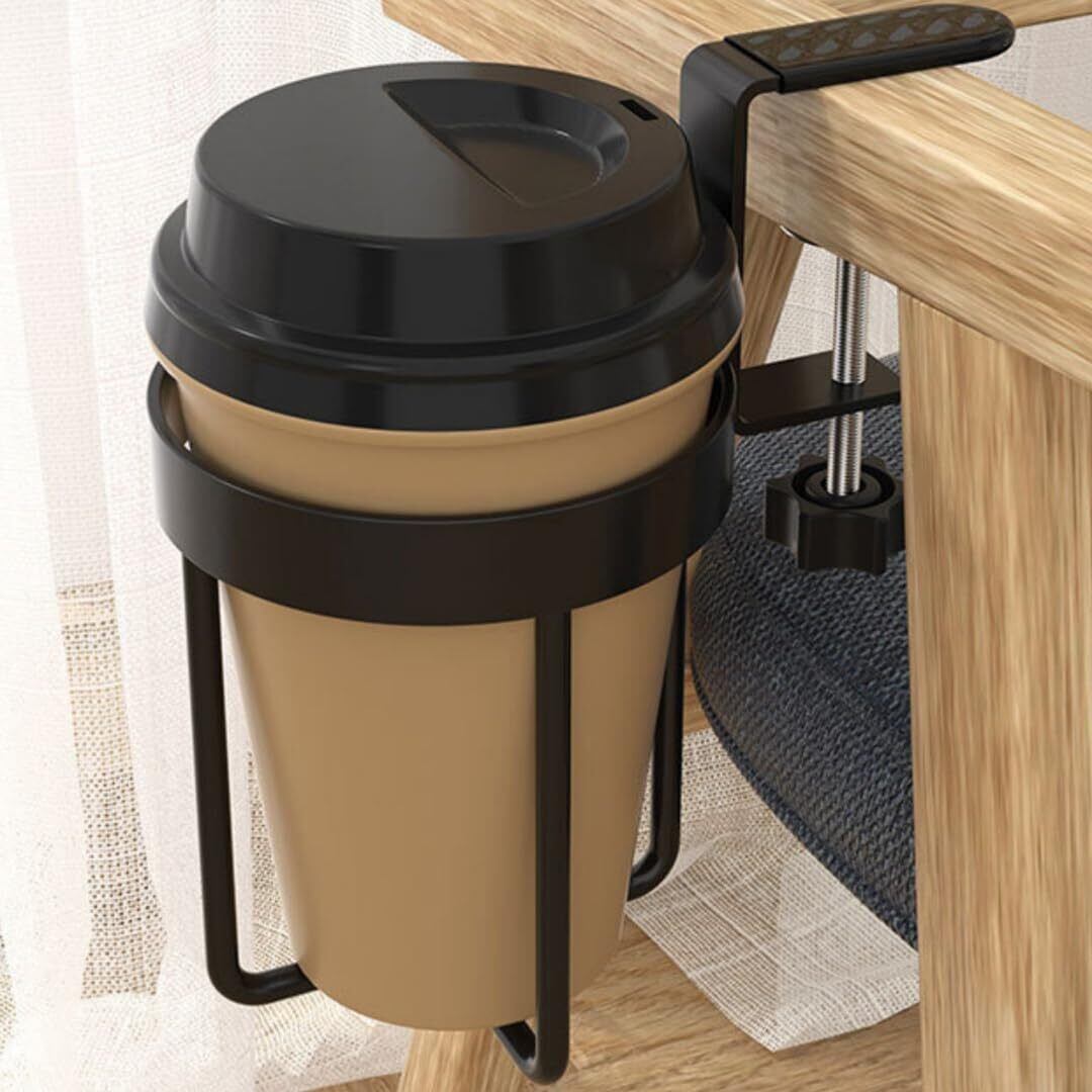 「スペース節約」カップホルダーは、デスクや机にクランプでしっかり固定して、空間を有効に利用し、ドリンクやマグカップ、もしくは小物を収納出来ます。また、コーヒーや飲み物をドリンクホルダーに置くと、うっかり触れて机にこぼすことがなくなります。