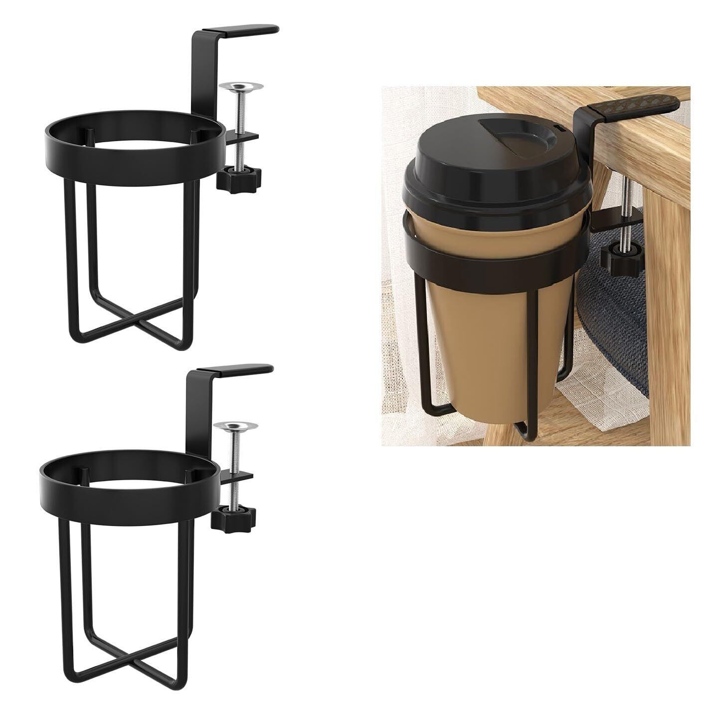 siawadeky ドリンクホルダー 2個セット コップスタンド クランプ式 カップホルダー 穴あけ不要 飲み物ホルダー 多機能 ホルダー 取り付け簡単 スペース節約 テーブル収納 対応直径10cm以内