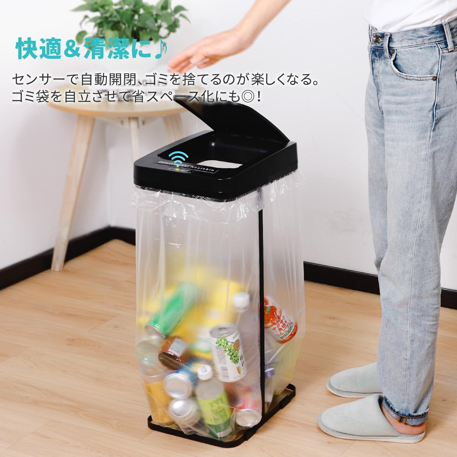 【自動センサー×ゴミ袋ホルダー】45L袋対応 ゴミ袋ホルダー ふた付き 自動 センサー 自動ゴミ箱 充電式 ゴミ袋スタンド 蓋付き おしゃれ センサー付き 分別 ごみ箱 2000mAhバッテリー搭載 幅25.5cm×奥行33cm×高さ65cm 開けっぱなし可能 清潔 生活防水 省スペース リビング 洗面所 トイレ オフィス キッチン (usbケーブル付き)
