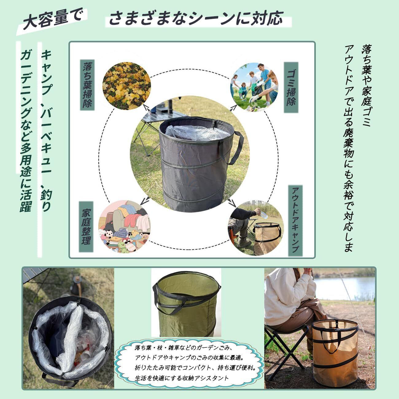 Natiform キャンプ ゴミ箱 折りたたみ ゴミ袋付き ガーデン バッグ (ダークグリーン, M (45×55cm)90L)