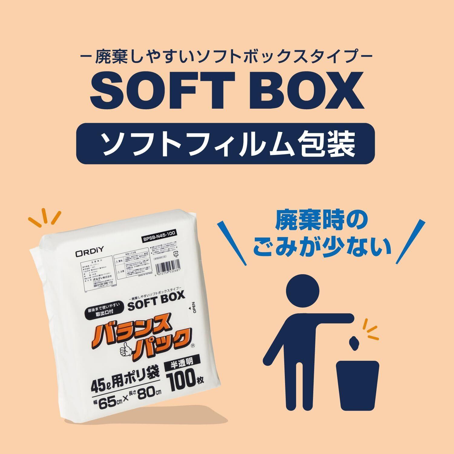 【2022最新】オルディ ごみ袋 45L 半透明 100枚入 1枚ずつ取り出せる ソフトなBOXタイプ バランスパック SOFTBOX