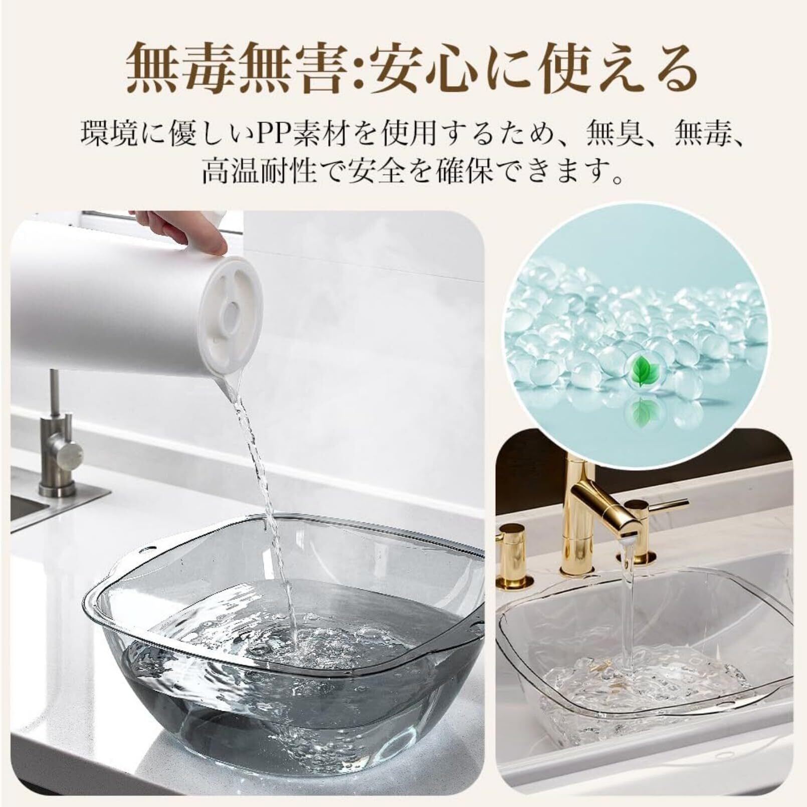Euiuxoy洗面器 たらい 透明 湯おけ 雑貨 北欧デザイン コンパクト 洗濯 掃除 足浴 風呂 アウトドア 旅行用 多用途 (M, グレー) (L,透明)