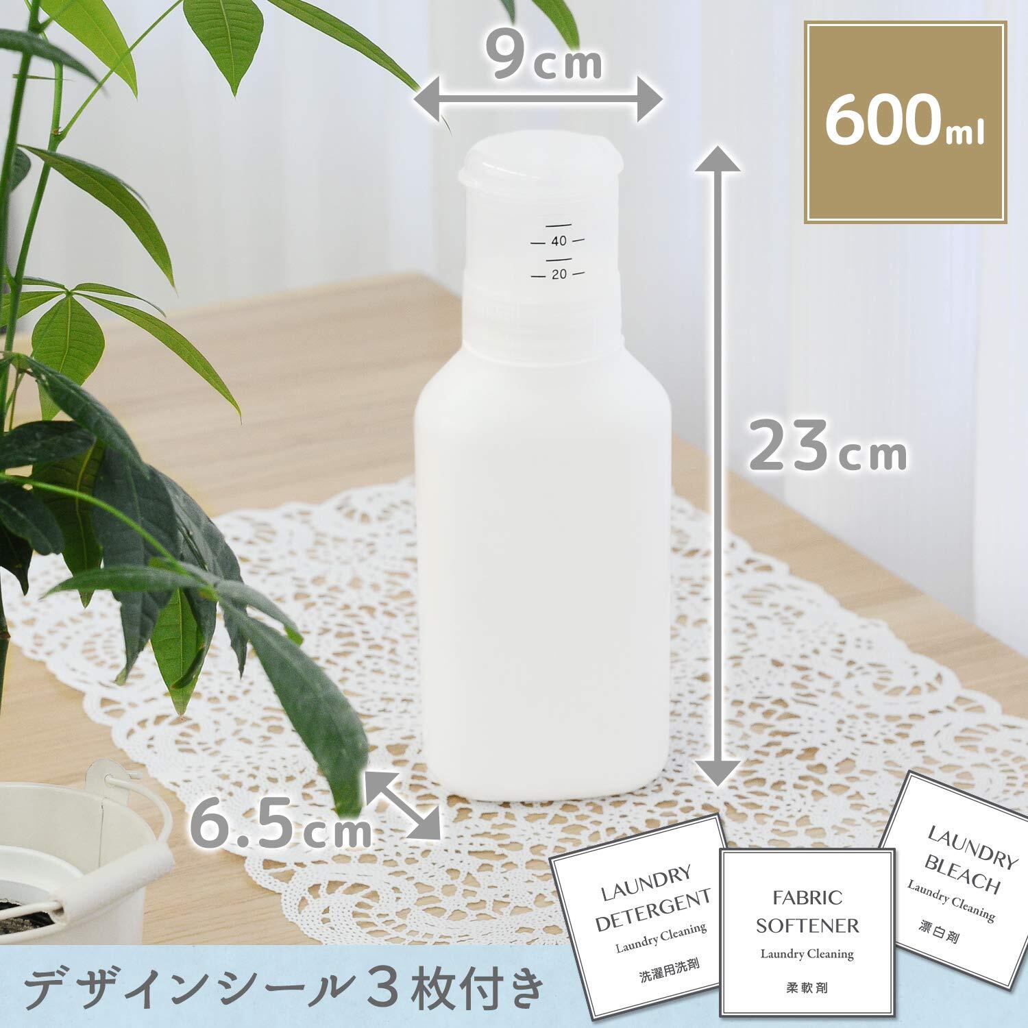 レック 押して計量 詰め替え 洗剤ボトル 600ml ( 液体洗剤用 ) 無地 ホワイト デザインシール付き W00108