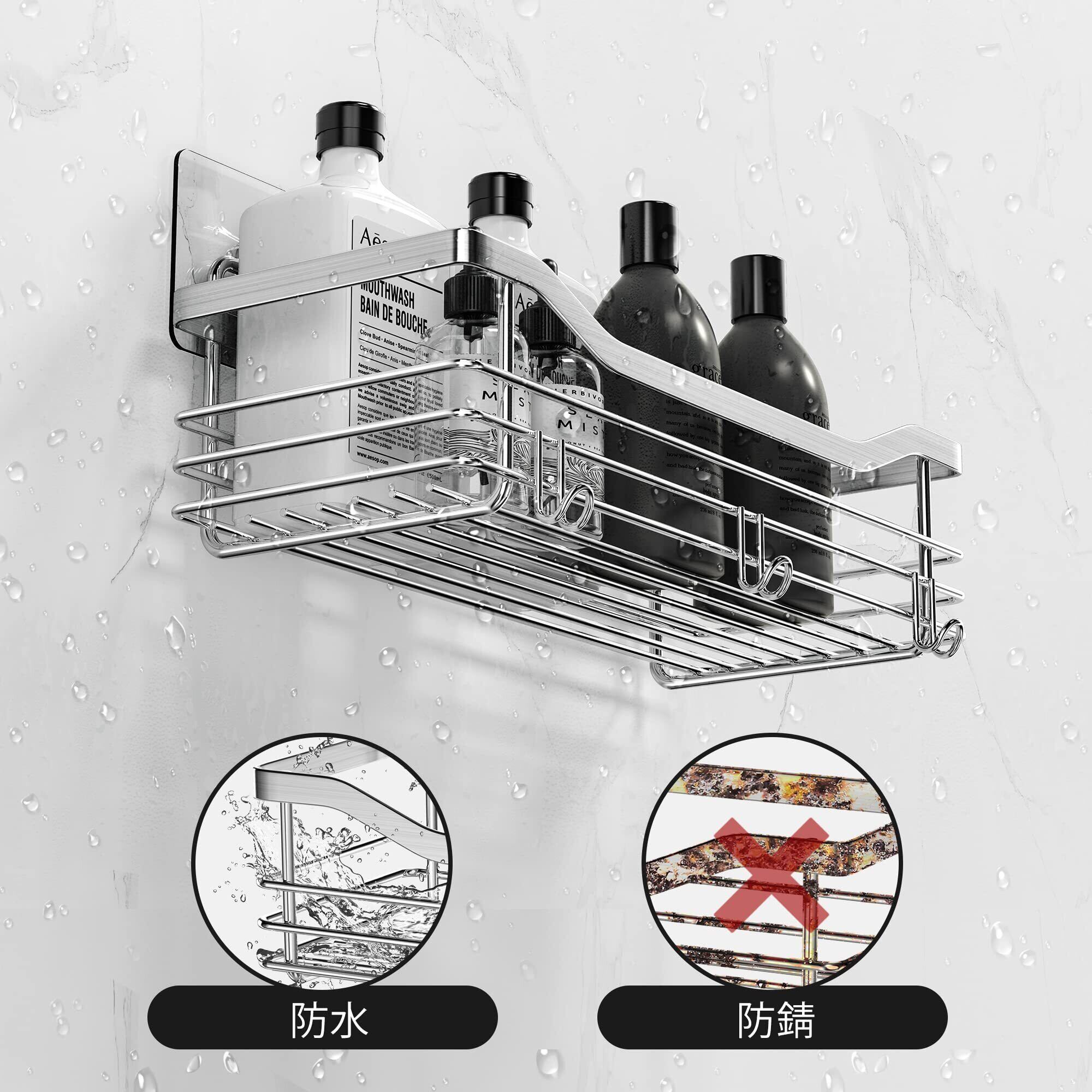 【取り付け簡単】穴あけ不要で壁を傷つけません。 フィルムをはがし、粘着テープを塗って、シャワーラックを取り付けるだけ。 ナノ粘着テープは強力な接着力を提供し、吸盤よりも耐久性があります。