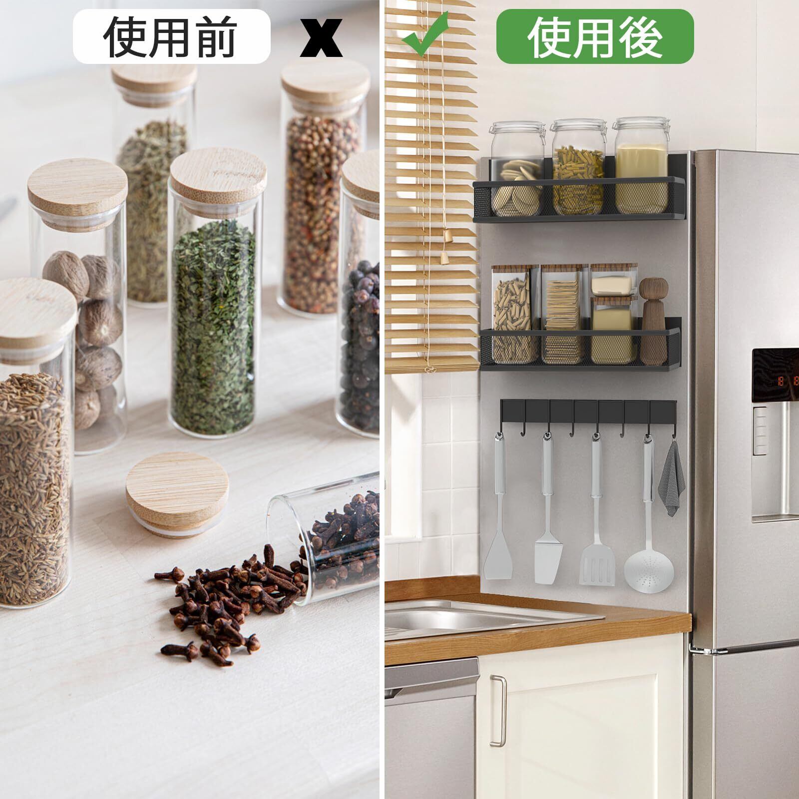 【マグネットフック付き】当店の製品の利点は、磁気フックも付いていることです。バスルームではタオル、バスボール、ブラシなどを掛けることができ、キッチンではヘラ、雑巾などを掛けることができ、玄関で鍵など小物も掛けることができます。