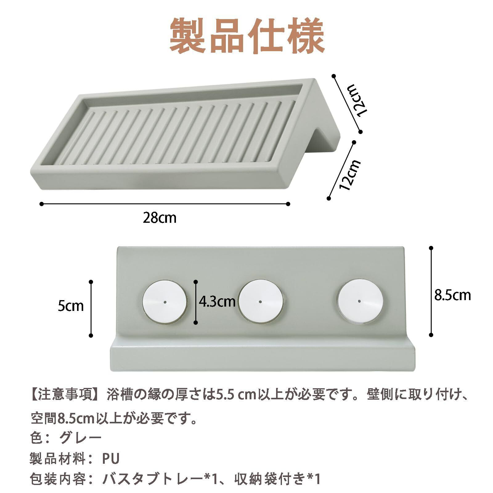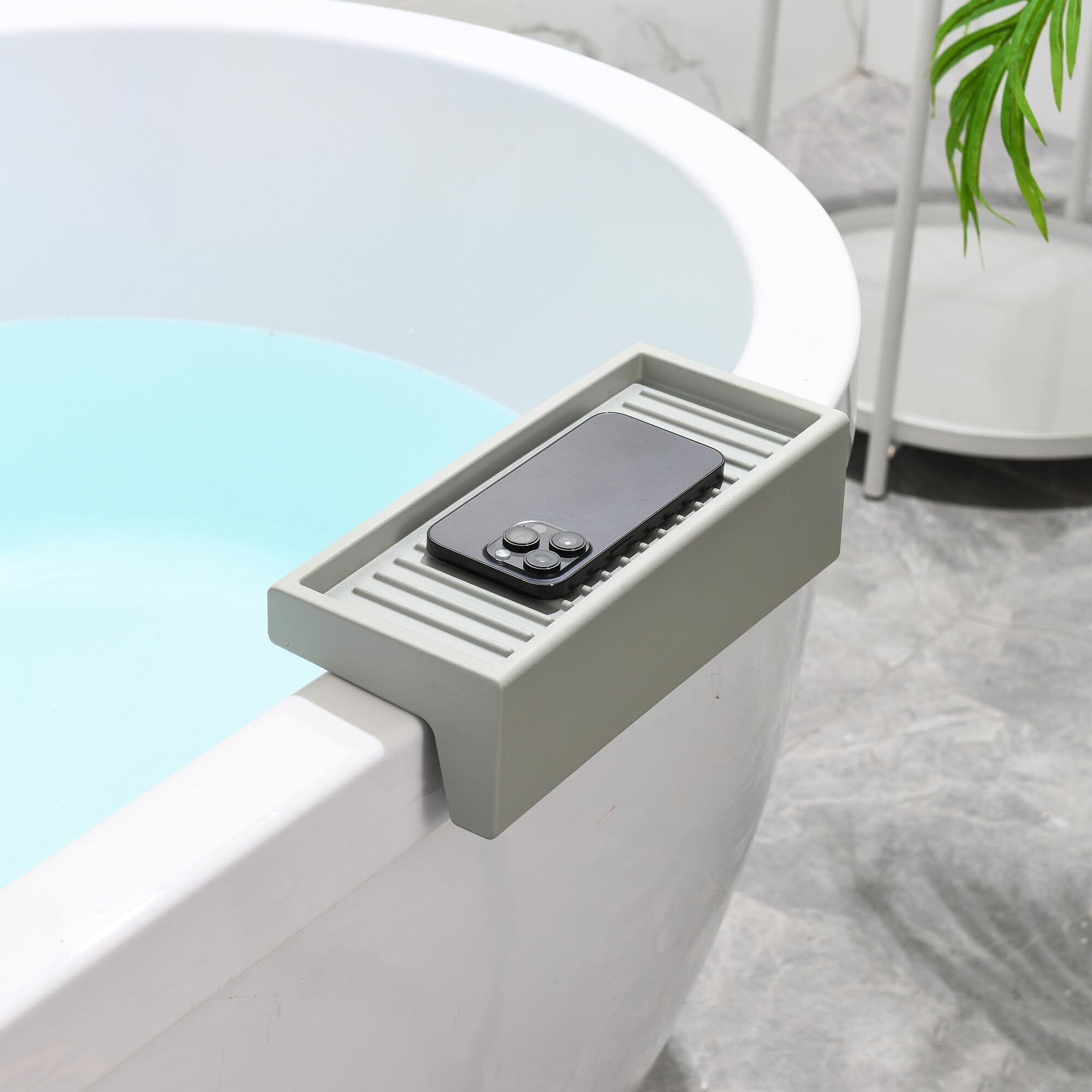 【新春セール】Guluto バスタブトレー 浴室用ラック 浴室トレイ 浴室トレー バス用トレイ バスルームトレイ 吸盤付き 小物トレ 浴室棚 バストレー スマホスタンド バスラック バスルーム収納 (グレー)