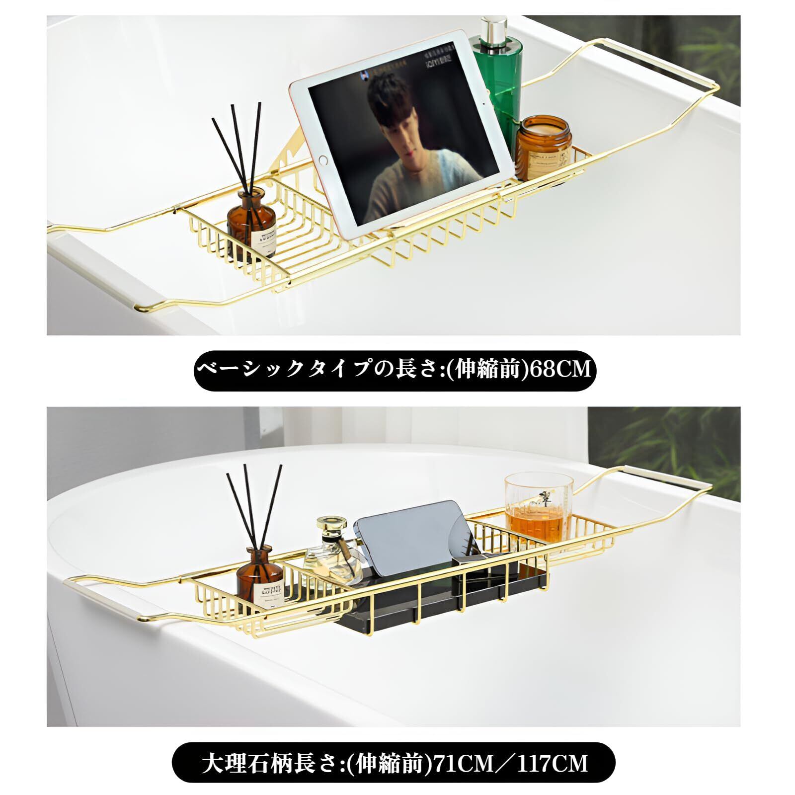 【柔軟なサイズ調整】このバスタブトレイは伸縮式で、バスタブのサイズに合わせて調節でき、様々なサイズのバスタブに適しており、ぴったりとフィットさせることができます。