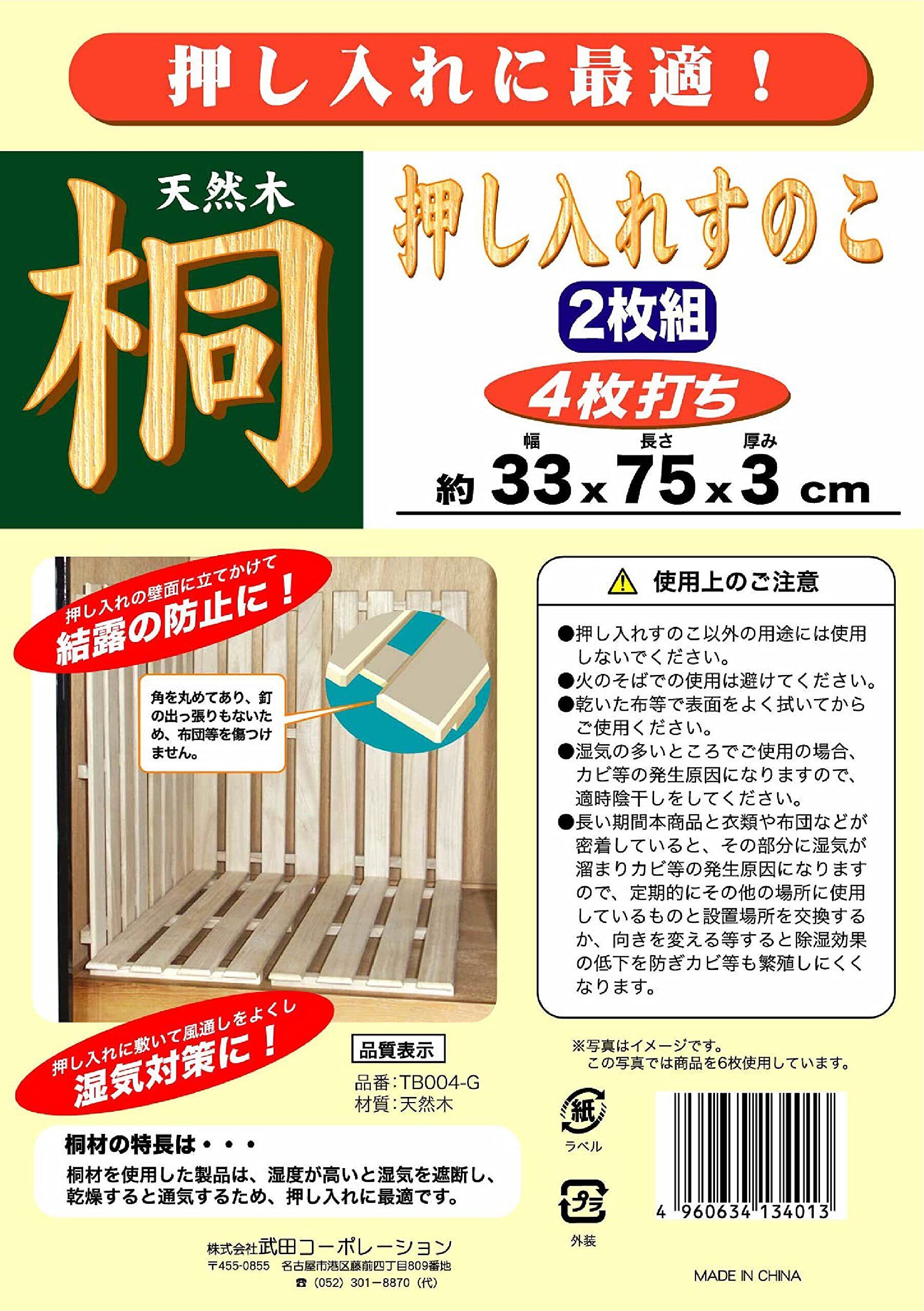 【数量限定】武田コーポレーション(Takeda corporation) 風呂マット・すのこ 桐押入れスノコ 2枚組 NA